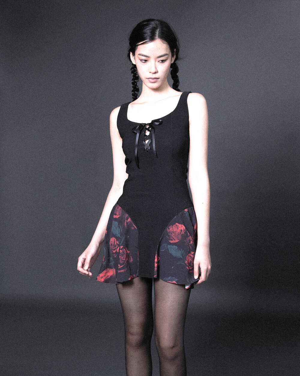 - 앞중심 깊은 트임에 코르셋 디테일
