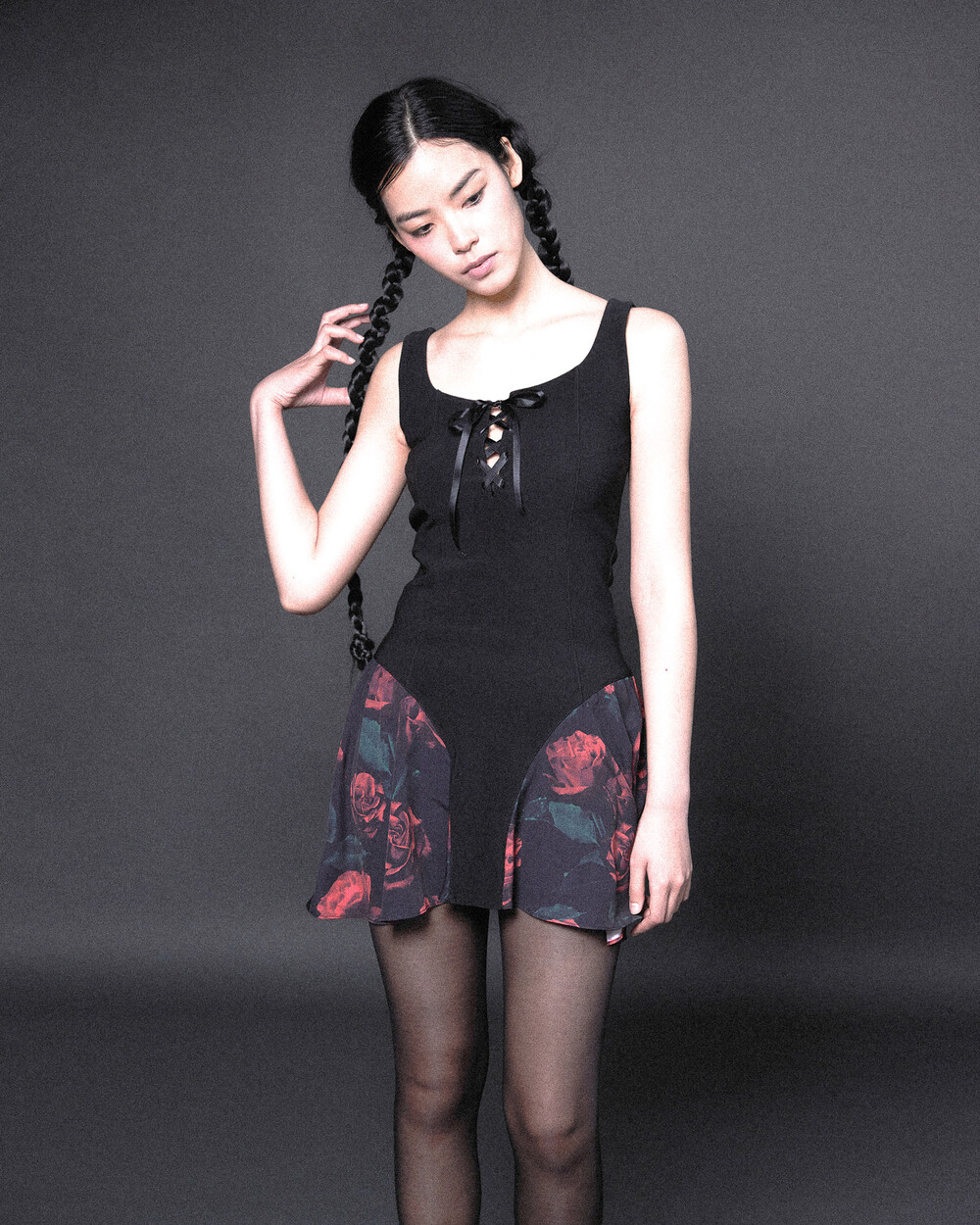 SIDE ROSE BUSTIER DRESS[Red]