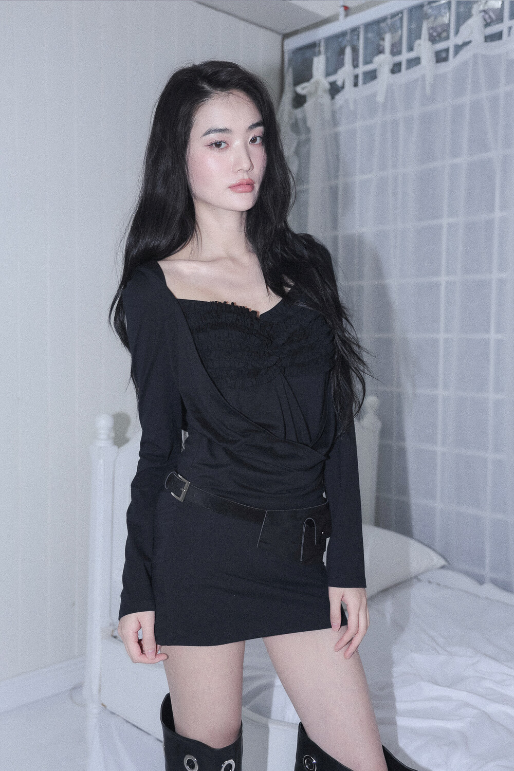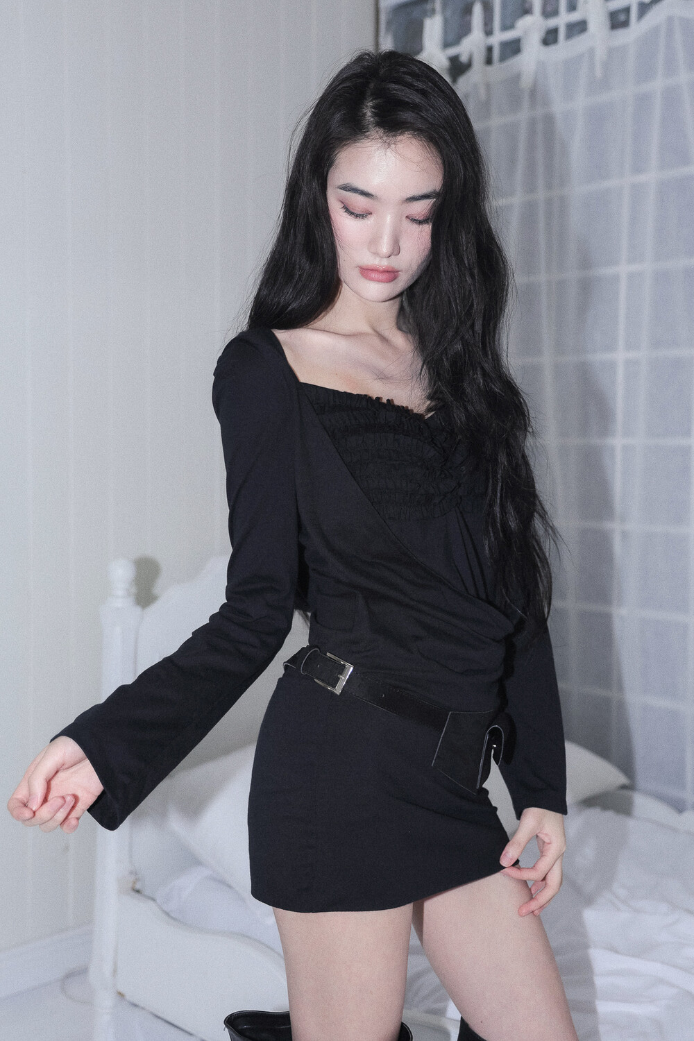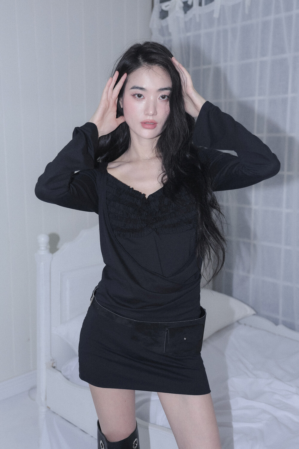 - 앞 가슴 프릴&가슴 중심 핀턱