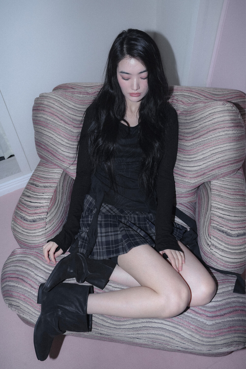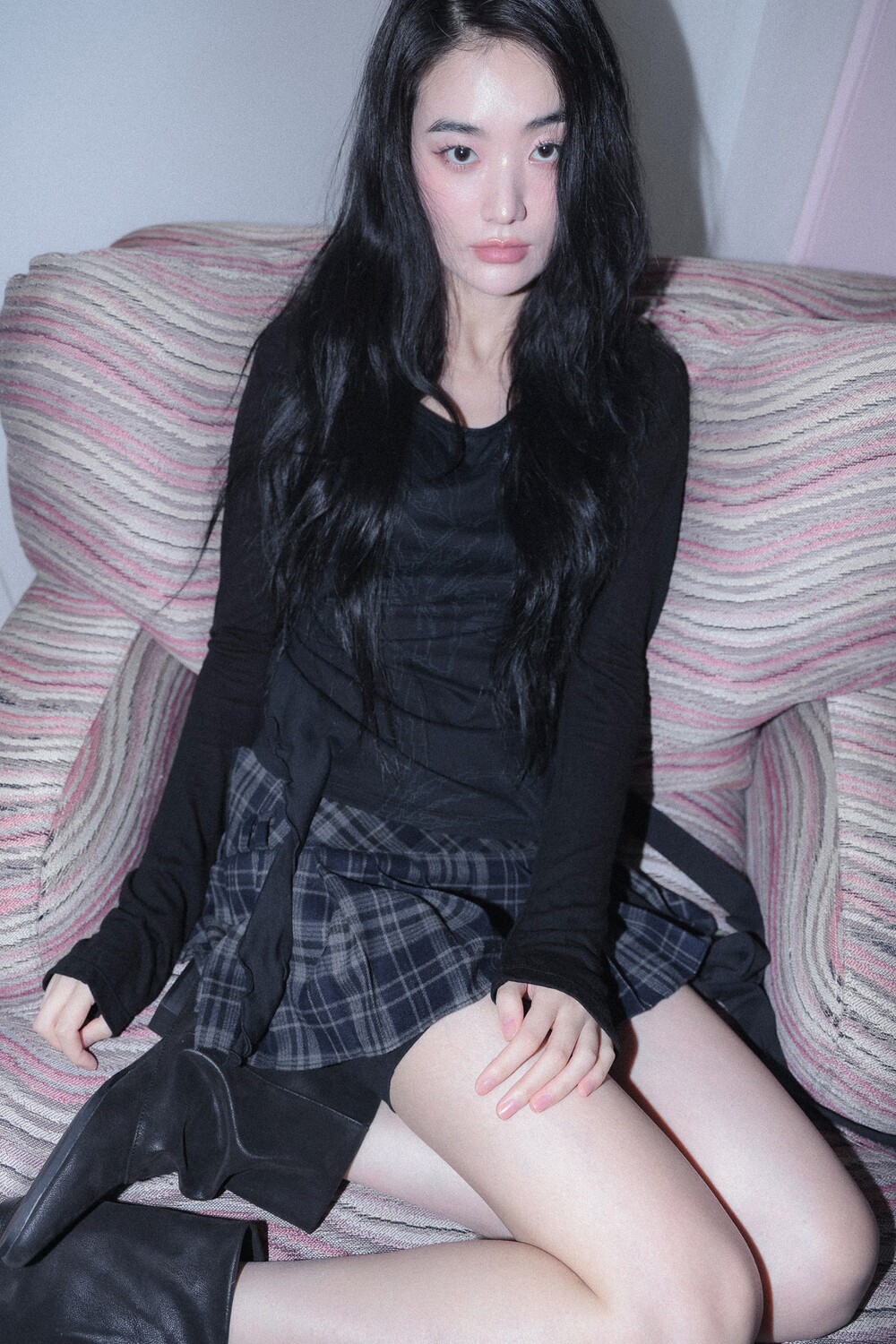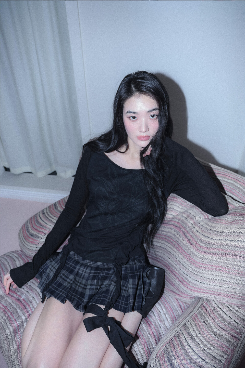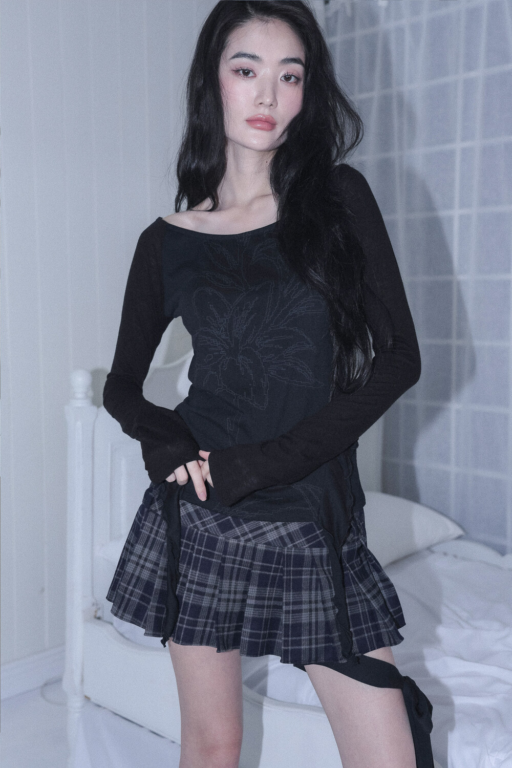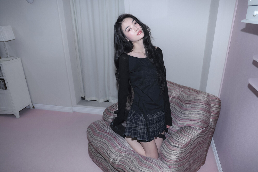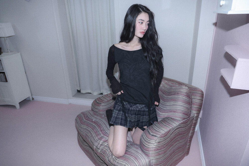 - 몸판, 소매 다른 소재로 배색 포인트