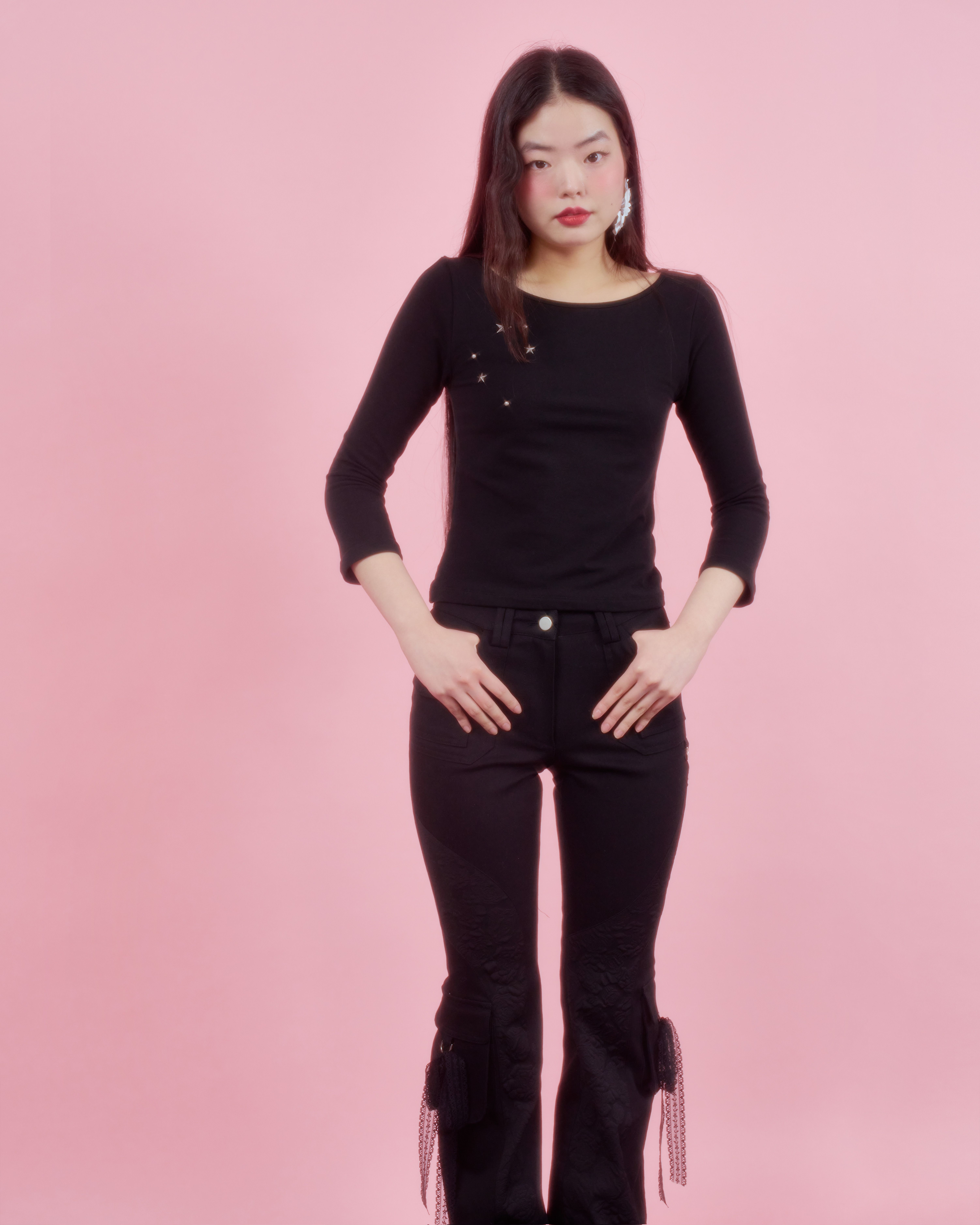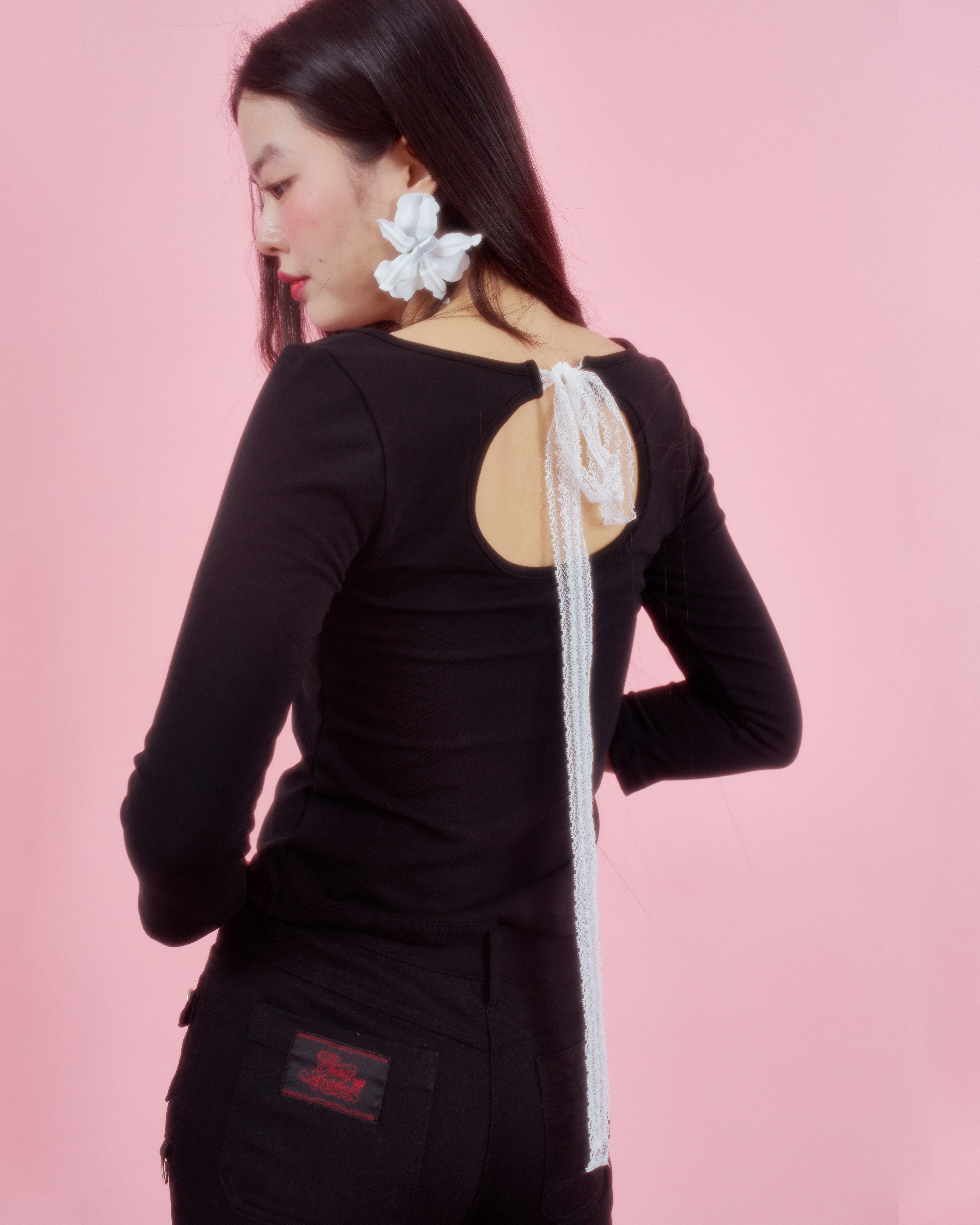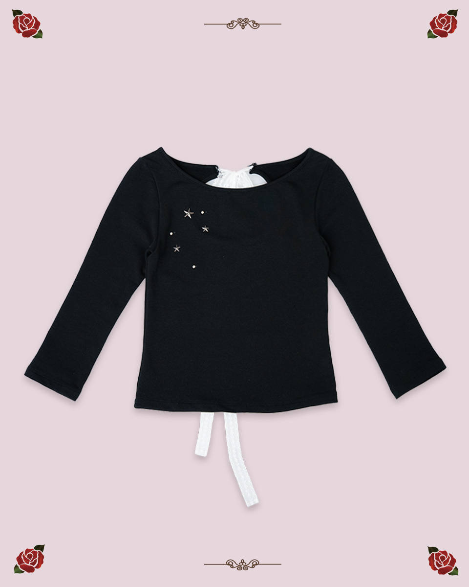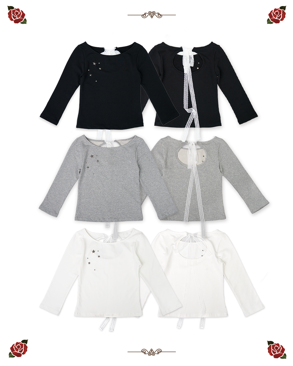 BACK RIBBON STUD T SHIRTS [BLACK]