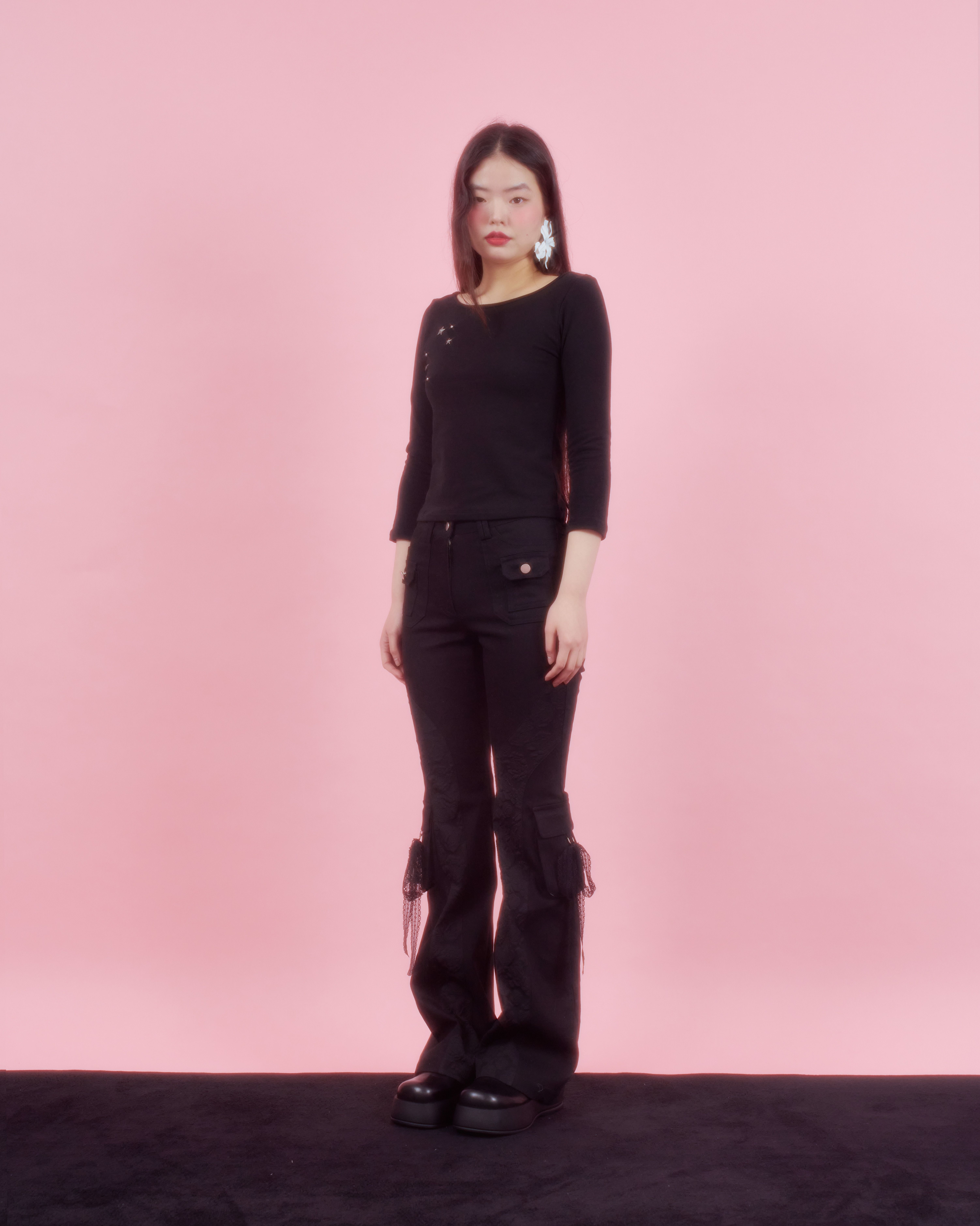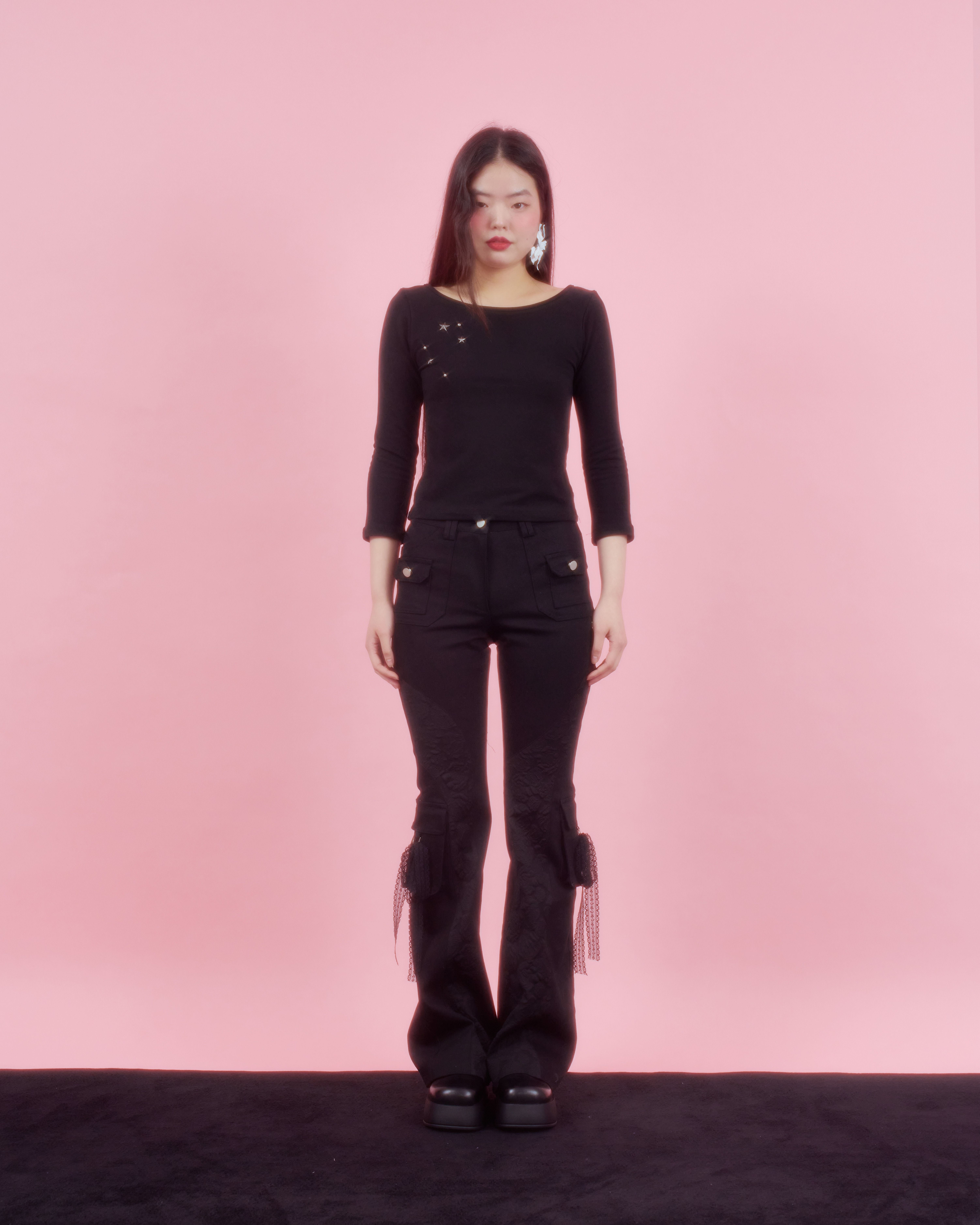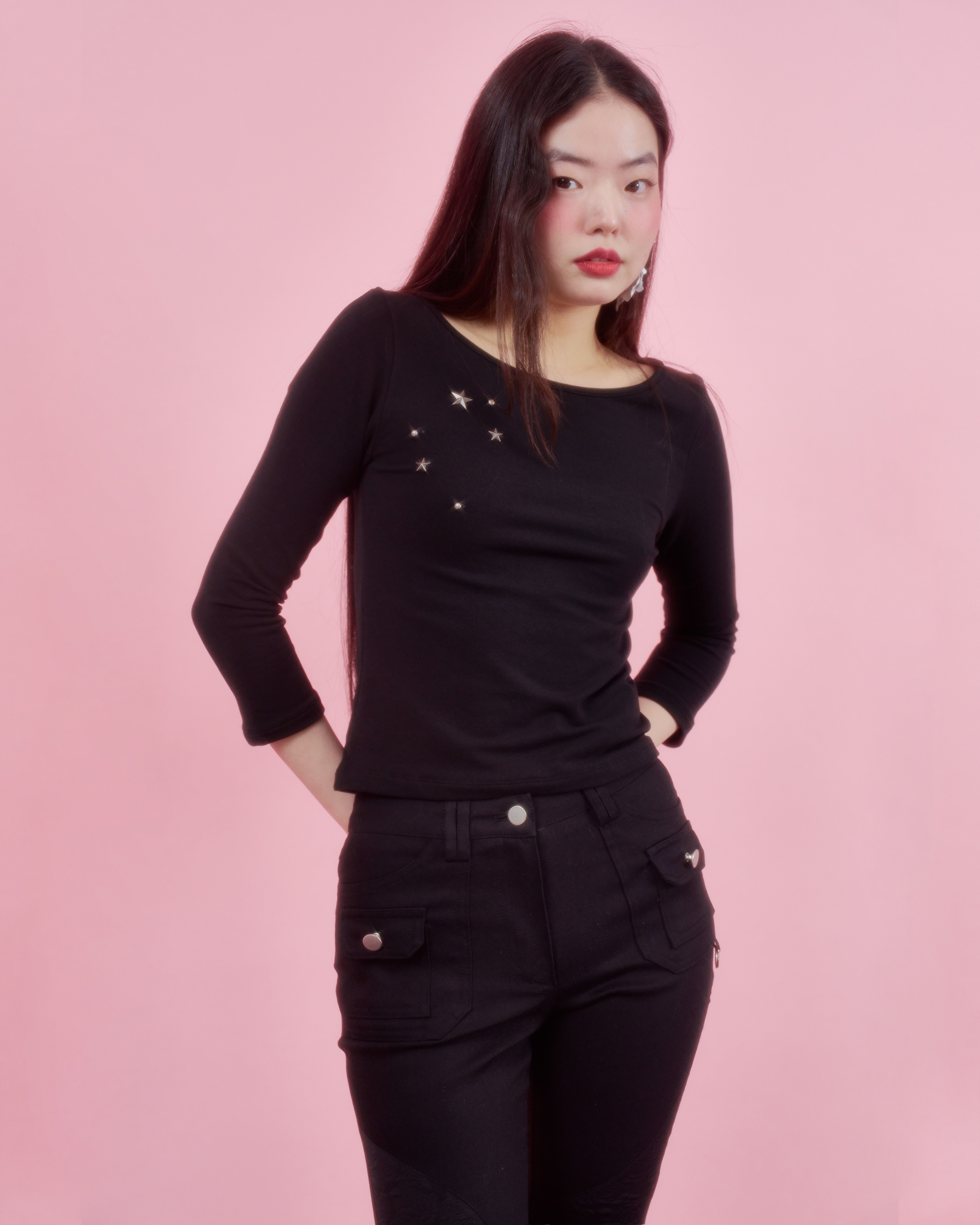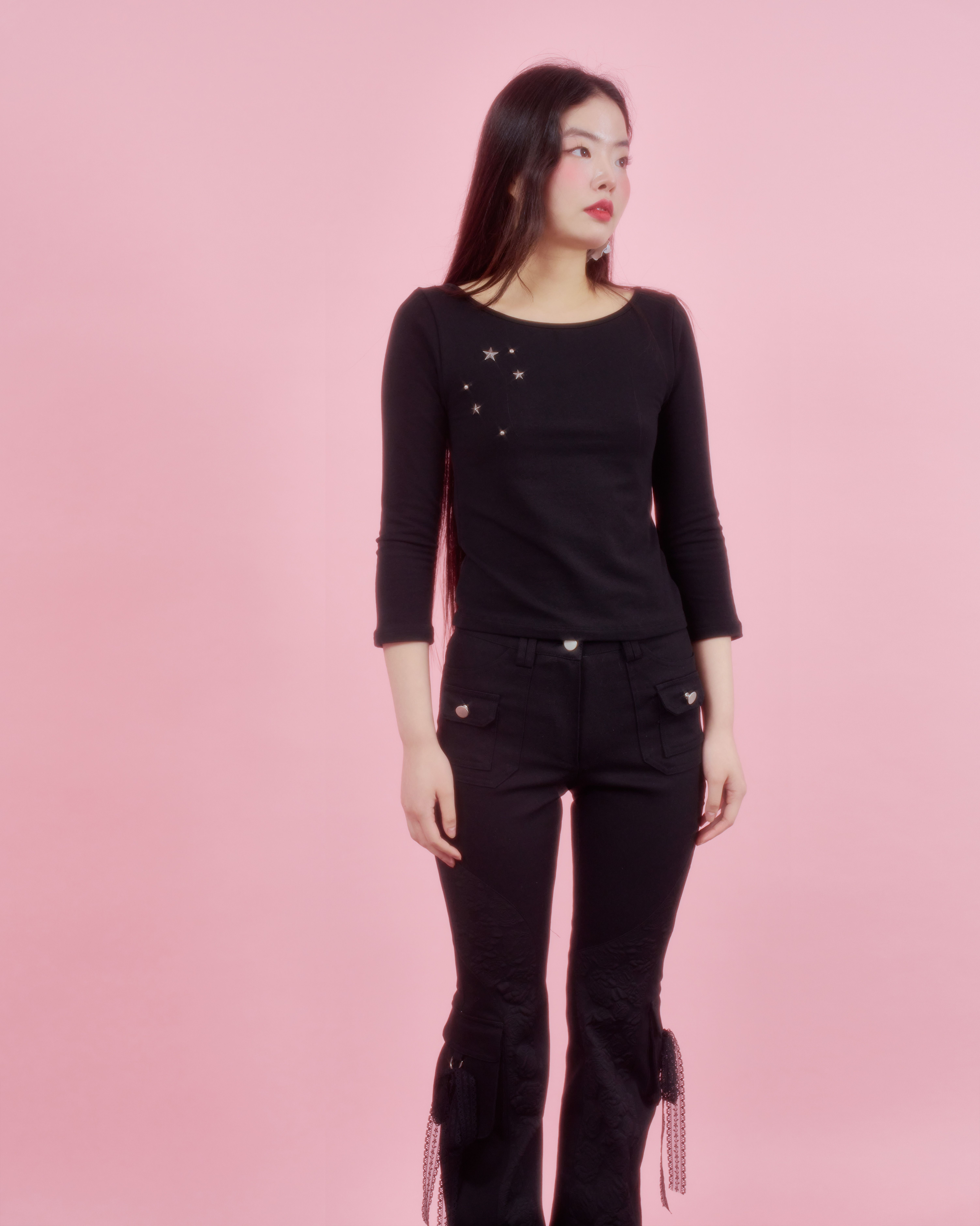 BACK RIBBON STUD T SHIRTS [BLACK]
