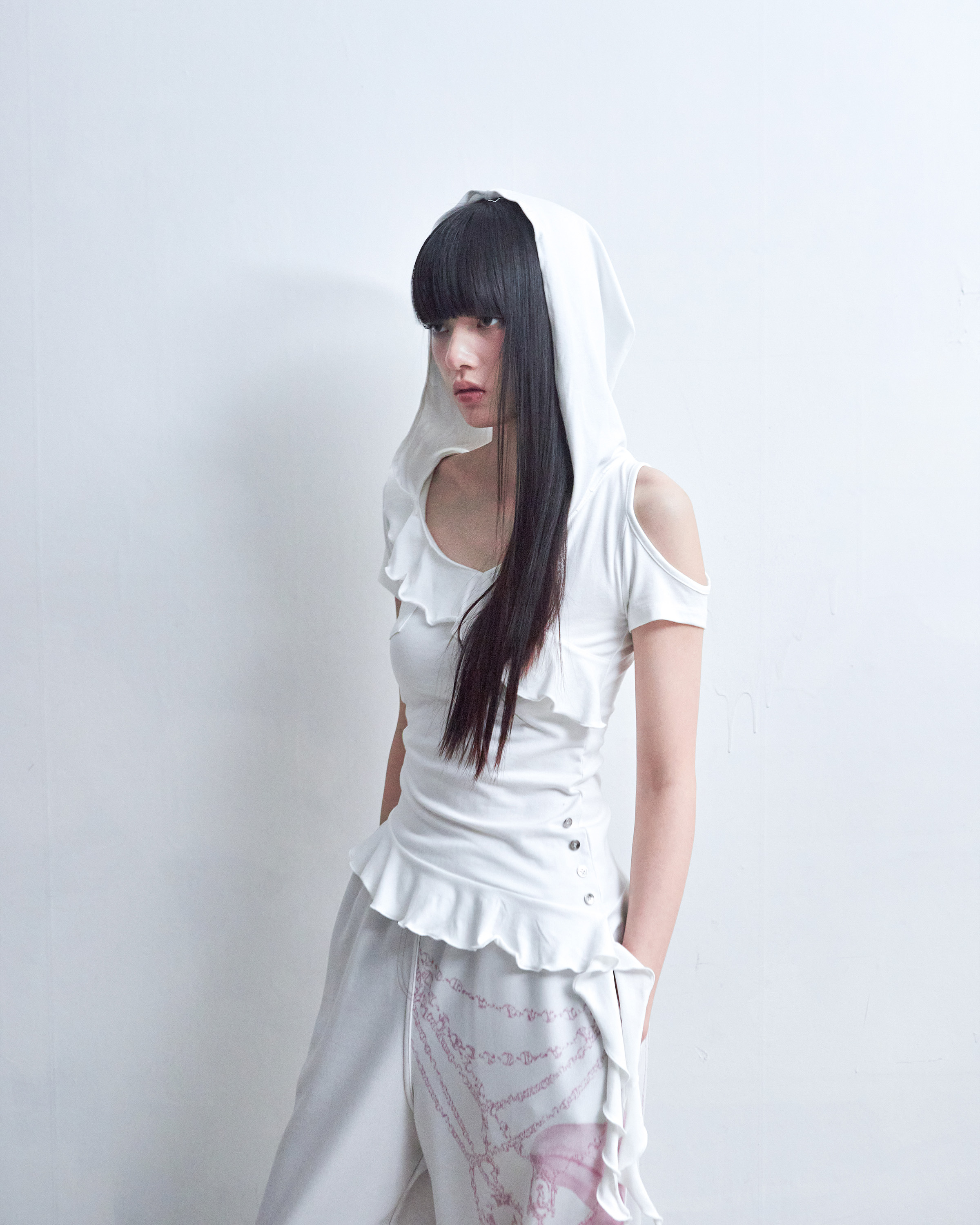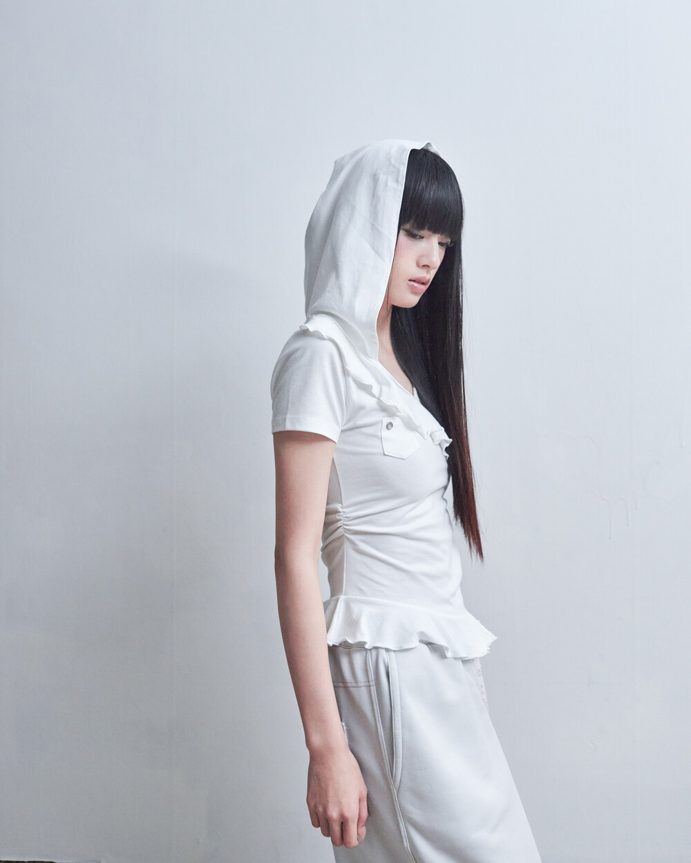 DROP FRILL T SHIRTS [IVORY]