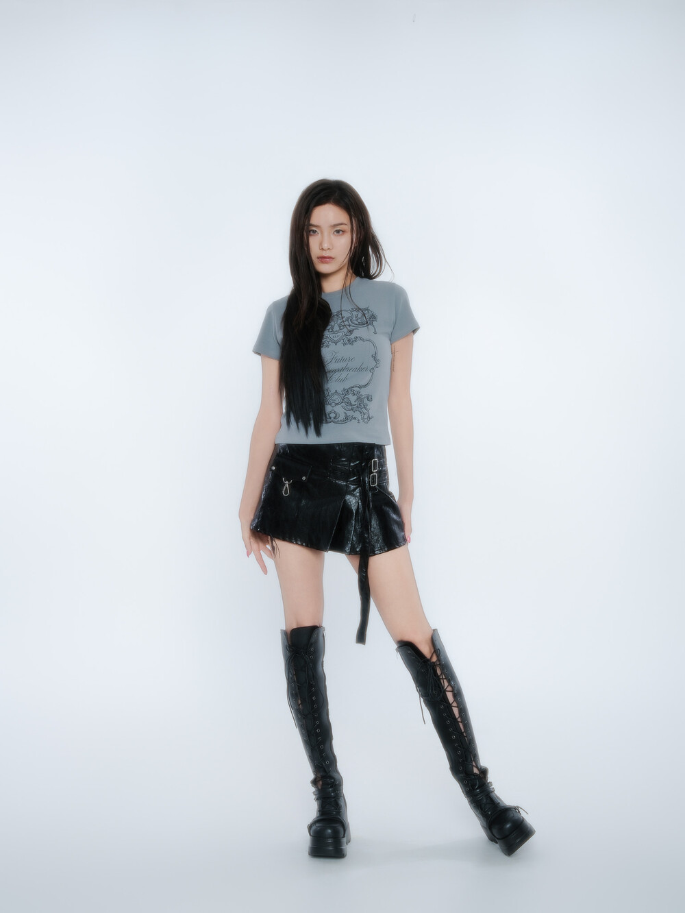 PLEATES WRAP SKIRT [BLACK]