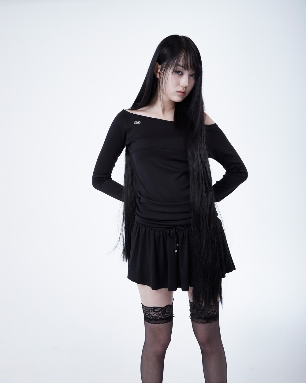 - 허리 밑 사이드에서 시작하는 셔링이 라인 보완
