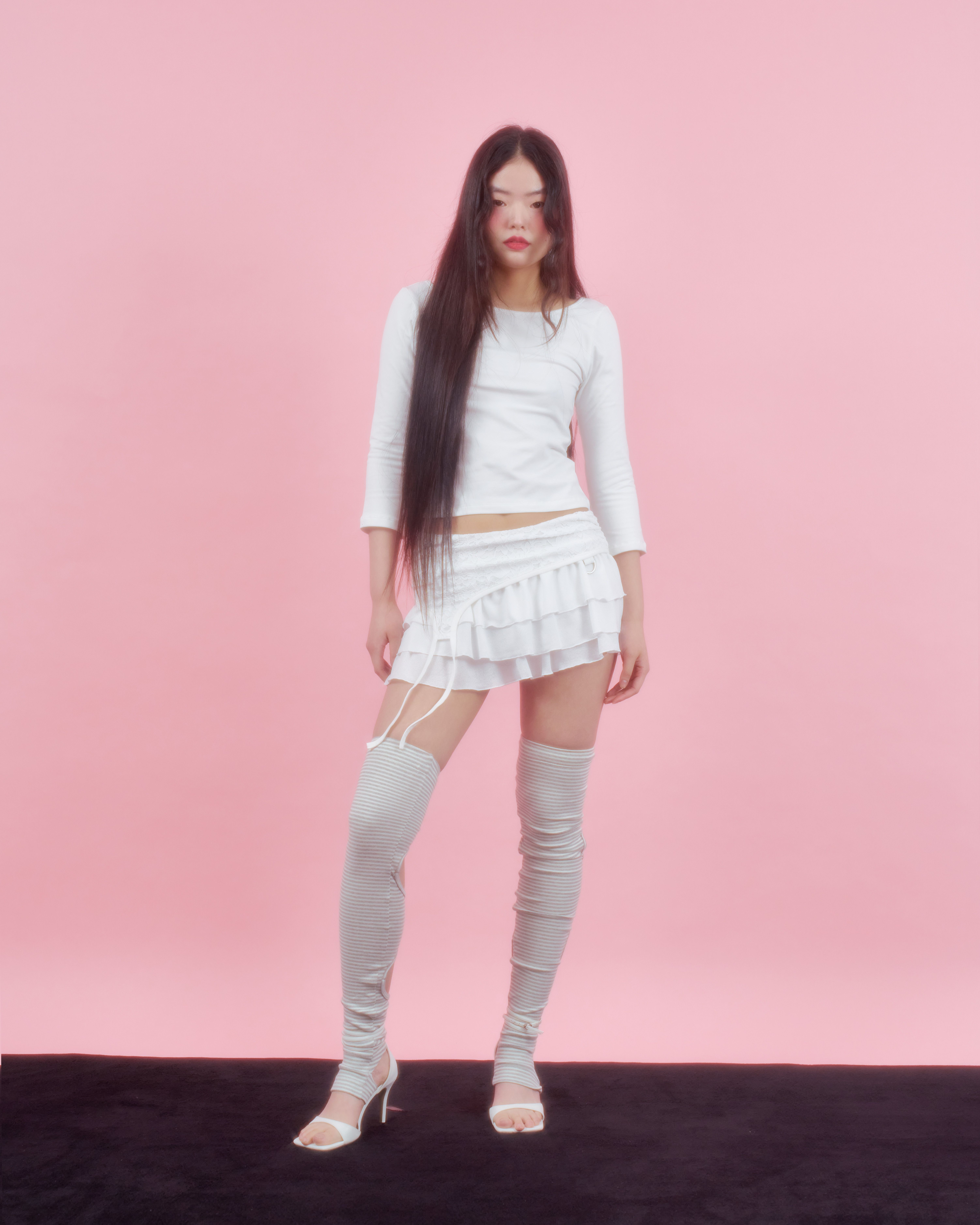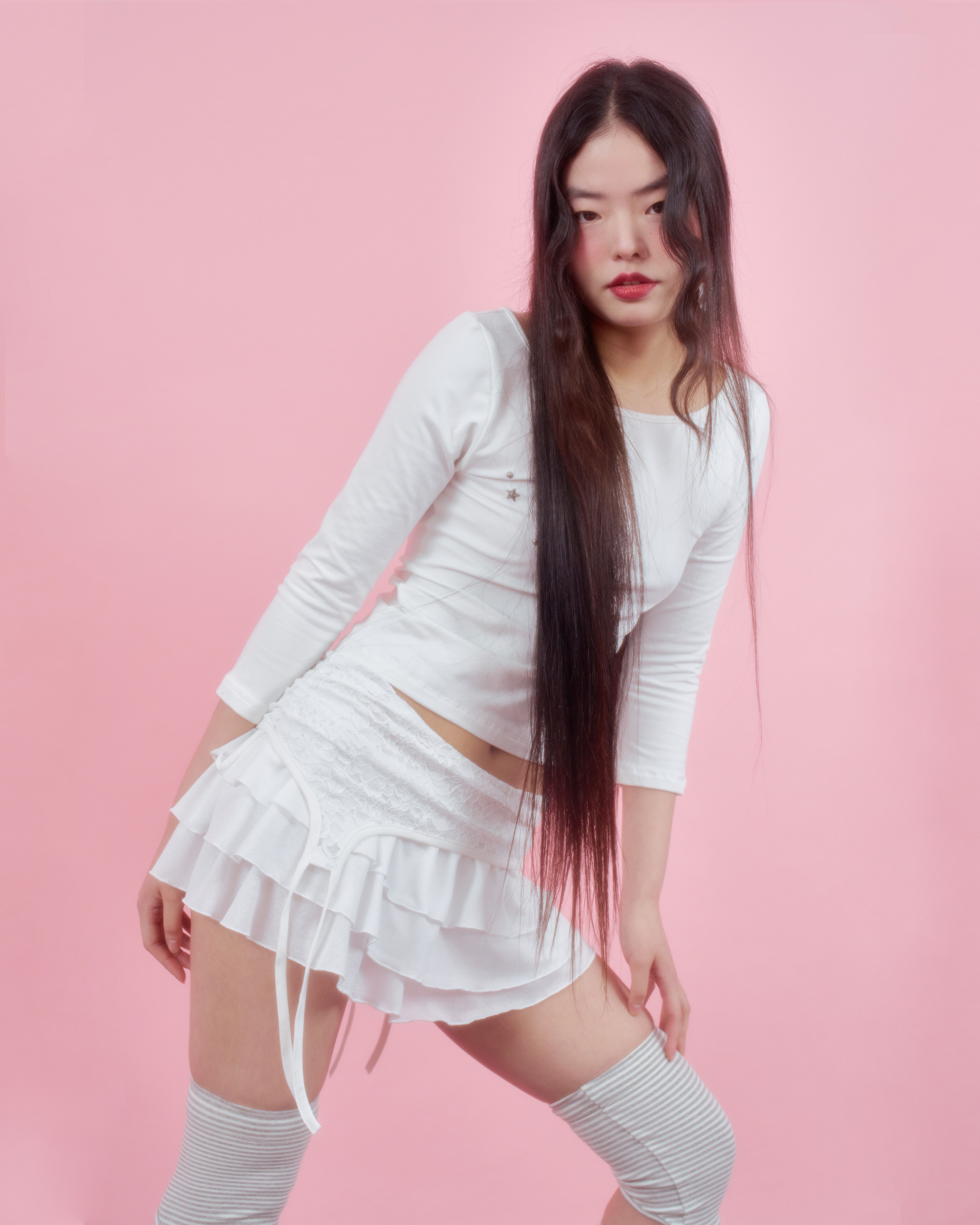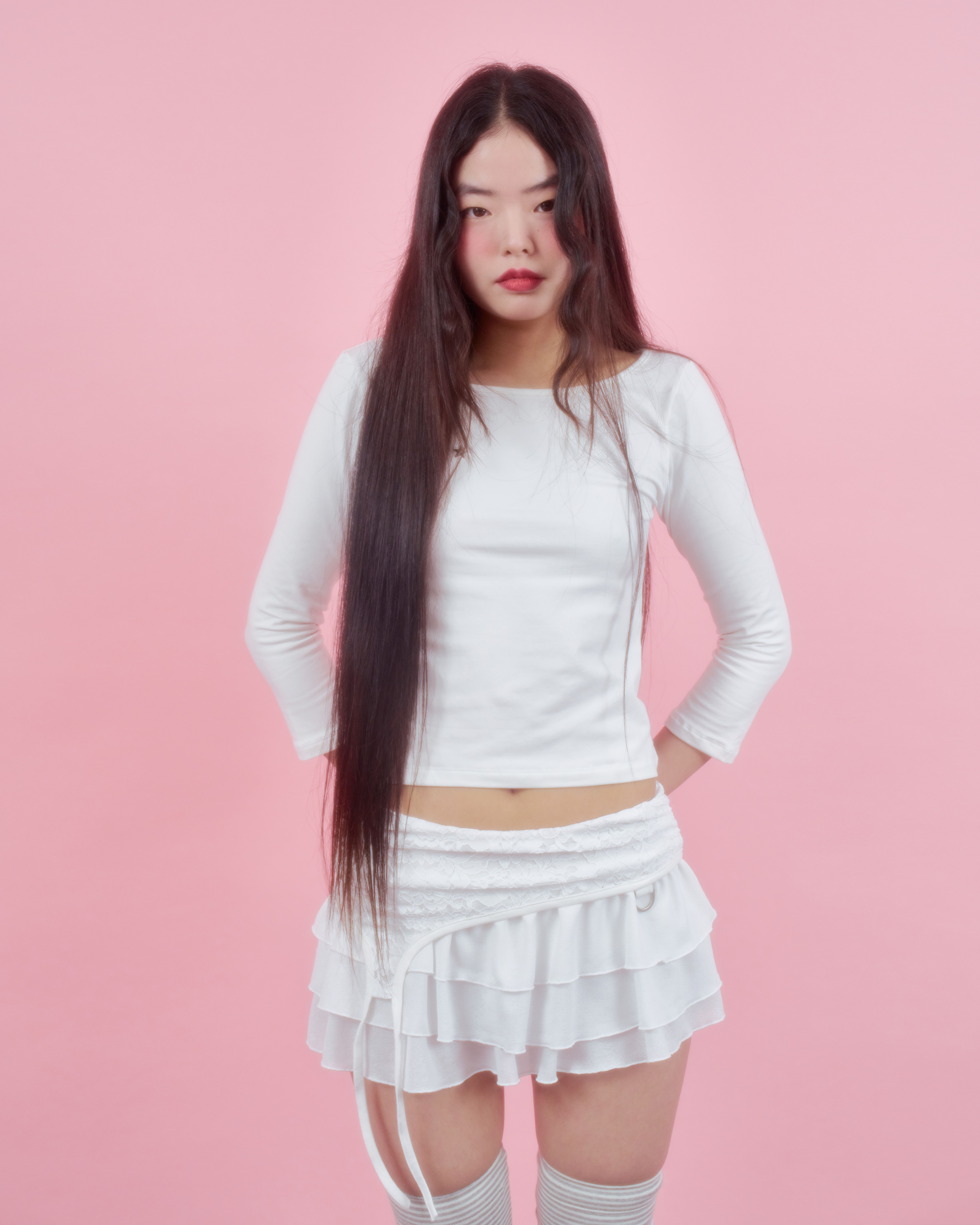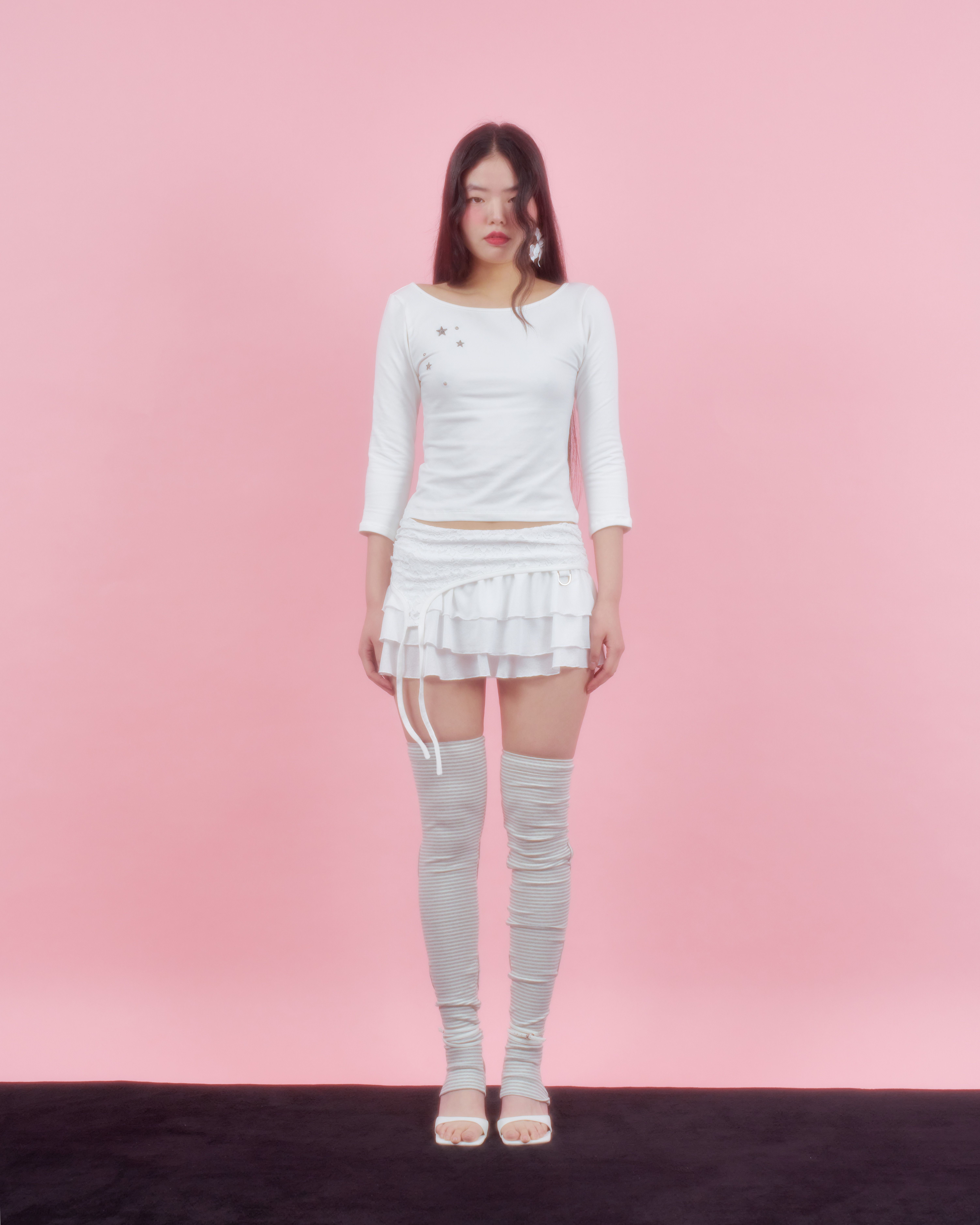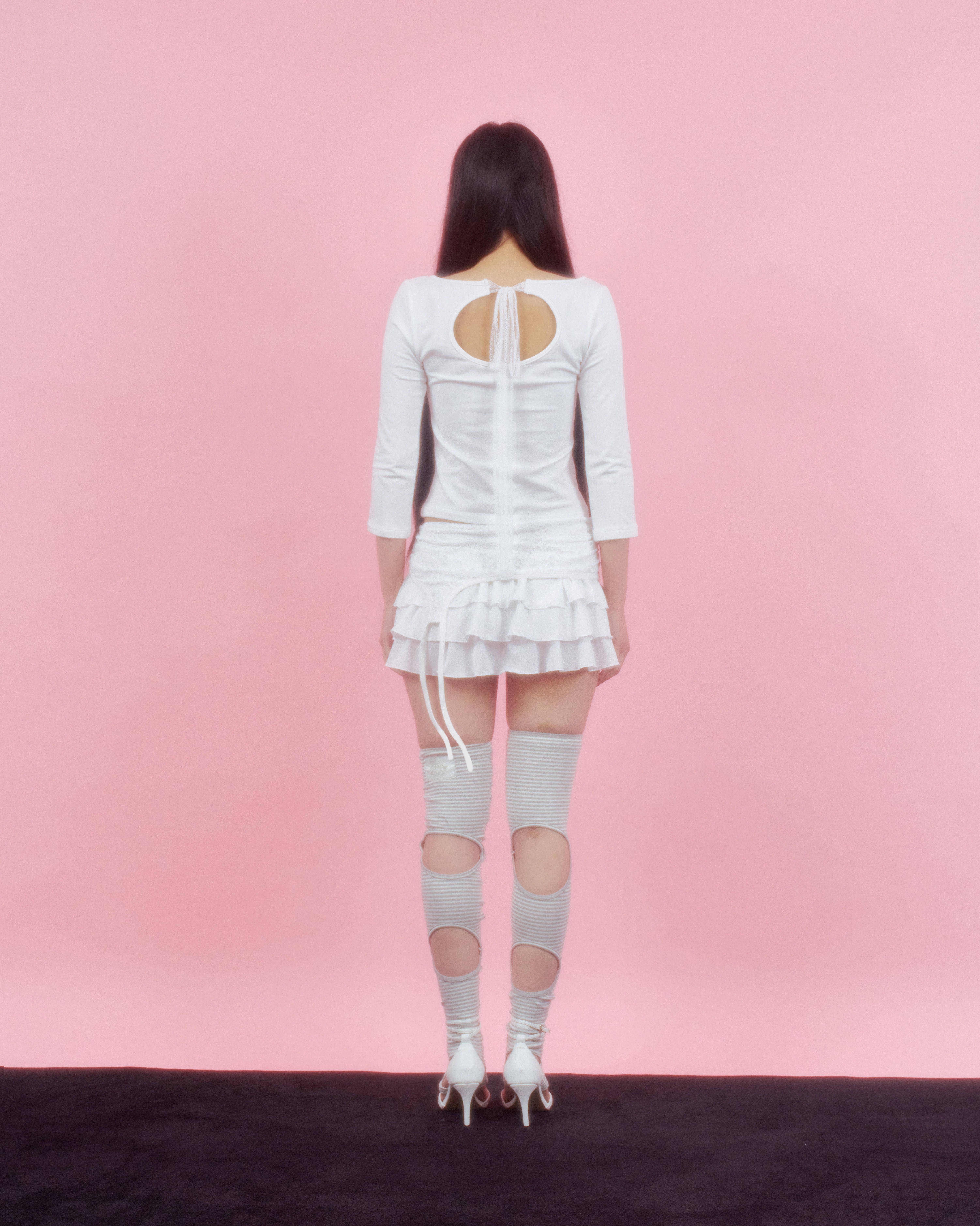 BACK RIBBON STUD T SHIRTS [IVORY]
