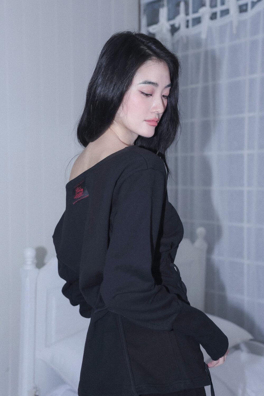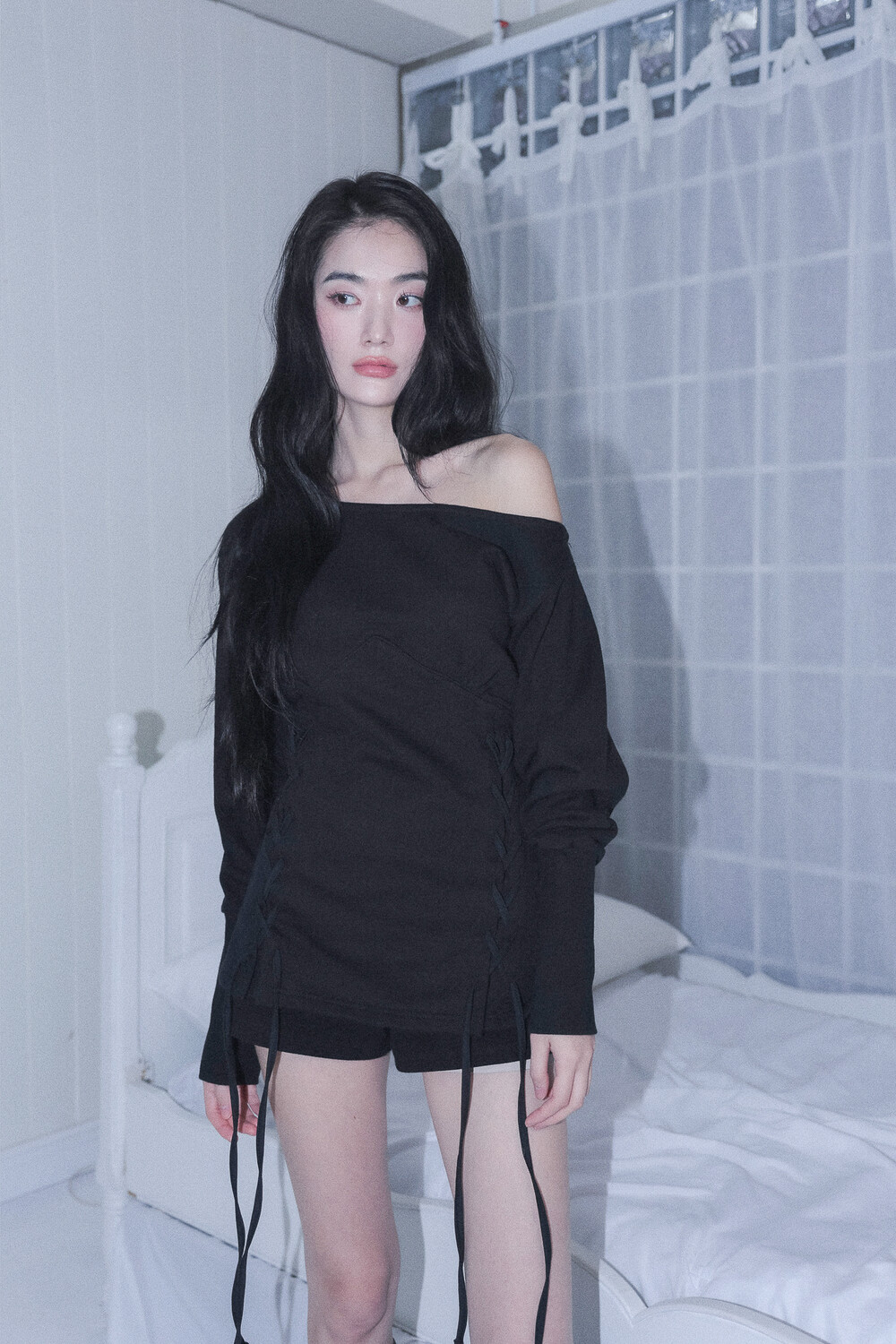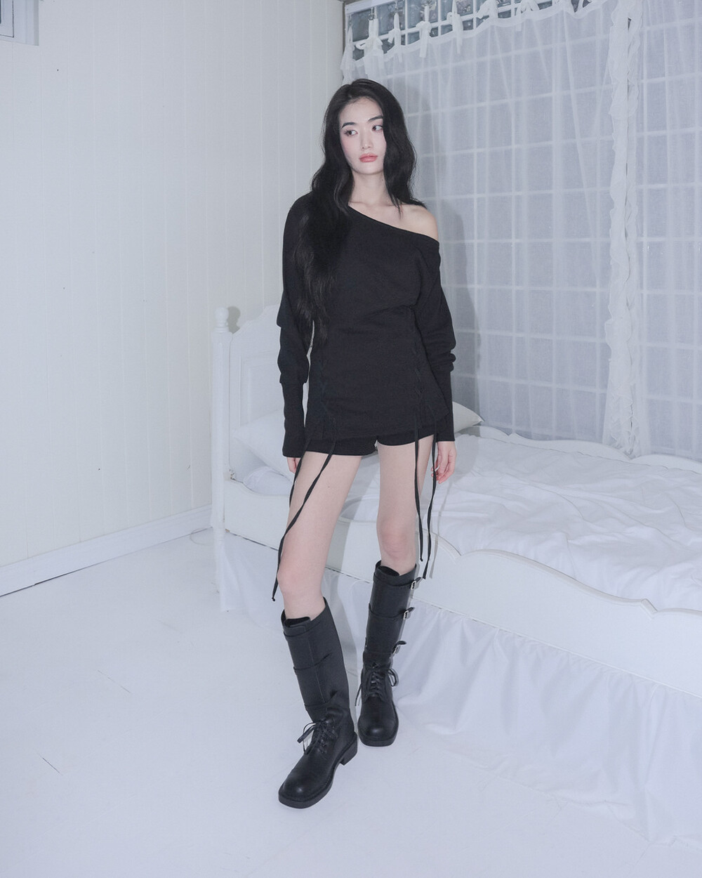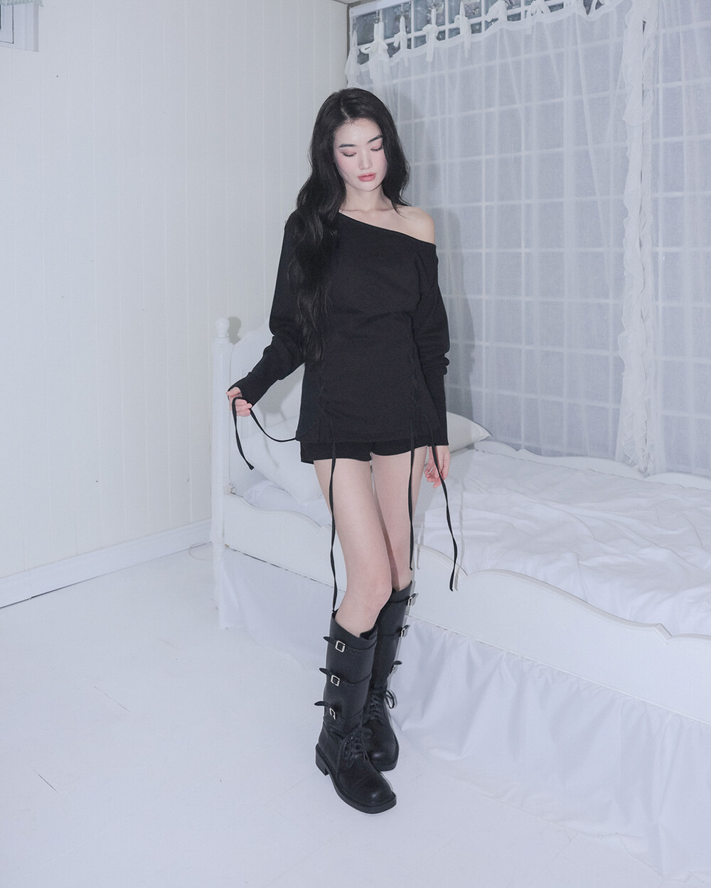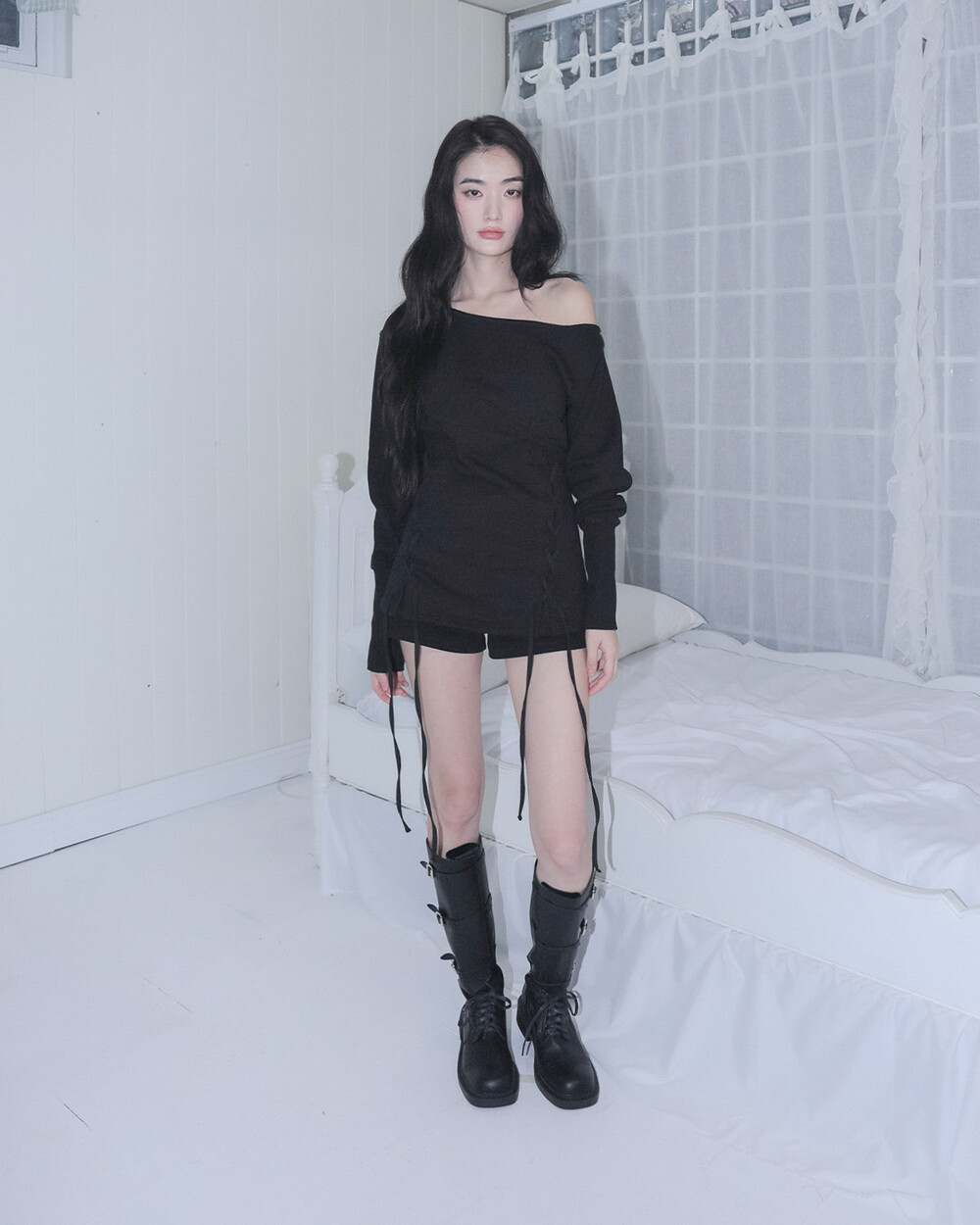- 뒷판 코르셋 안쪽 리본으로 허리 둘레 조정가능