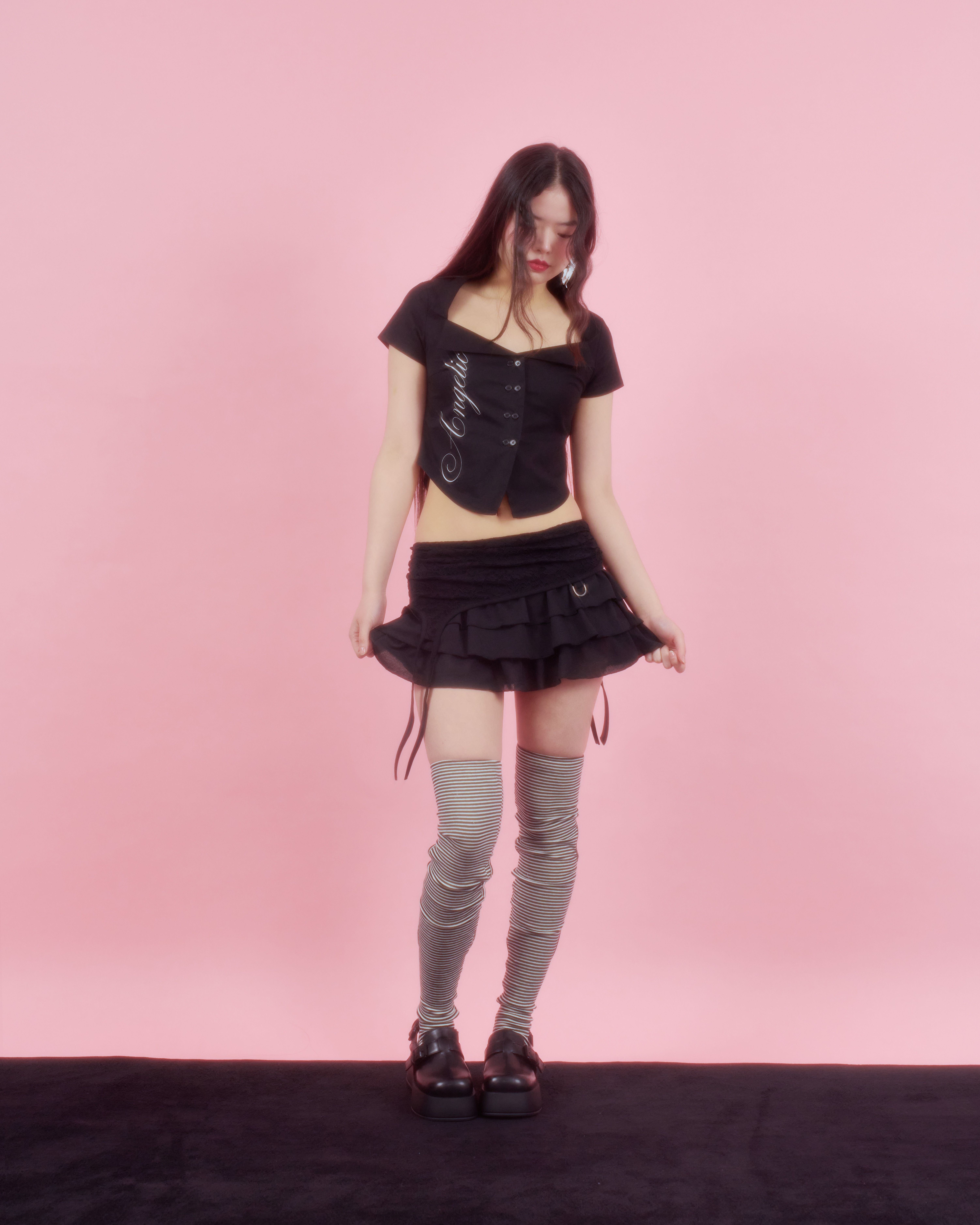 [4차] LACE GATER FRILL SKIRT [BLACK]
