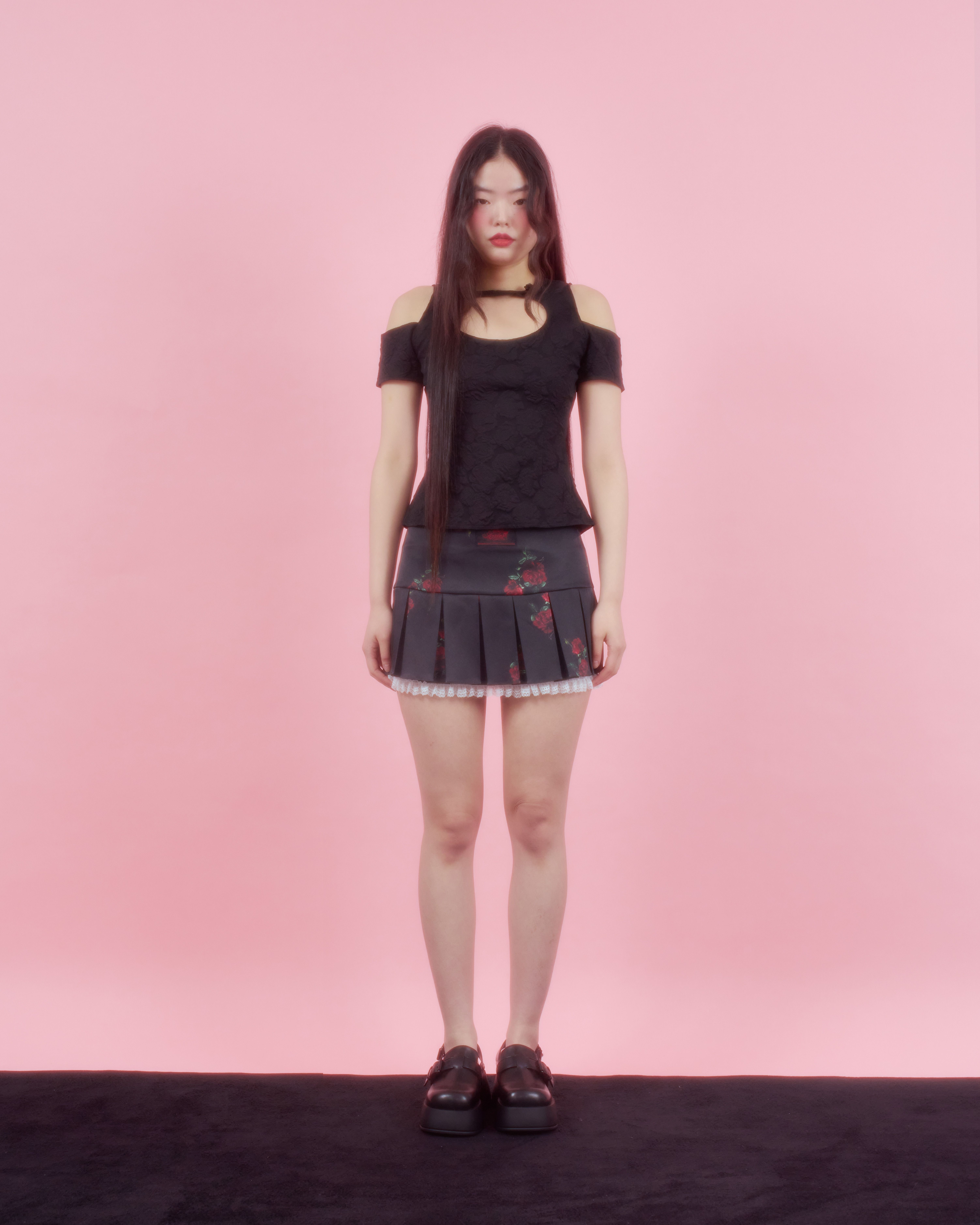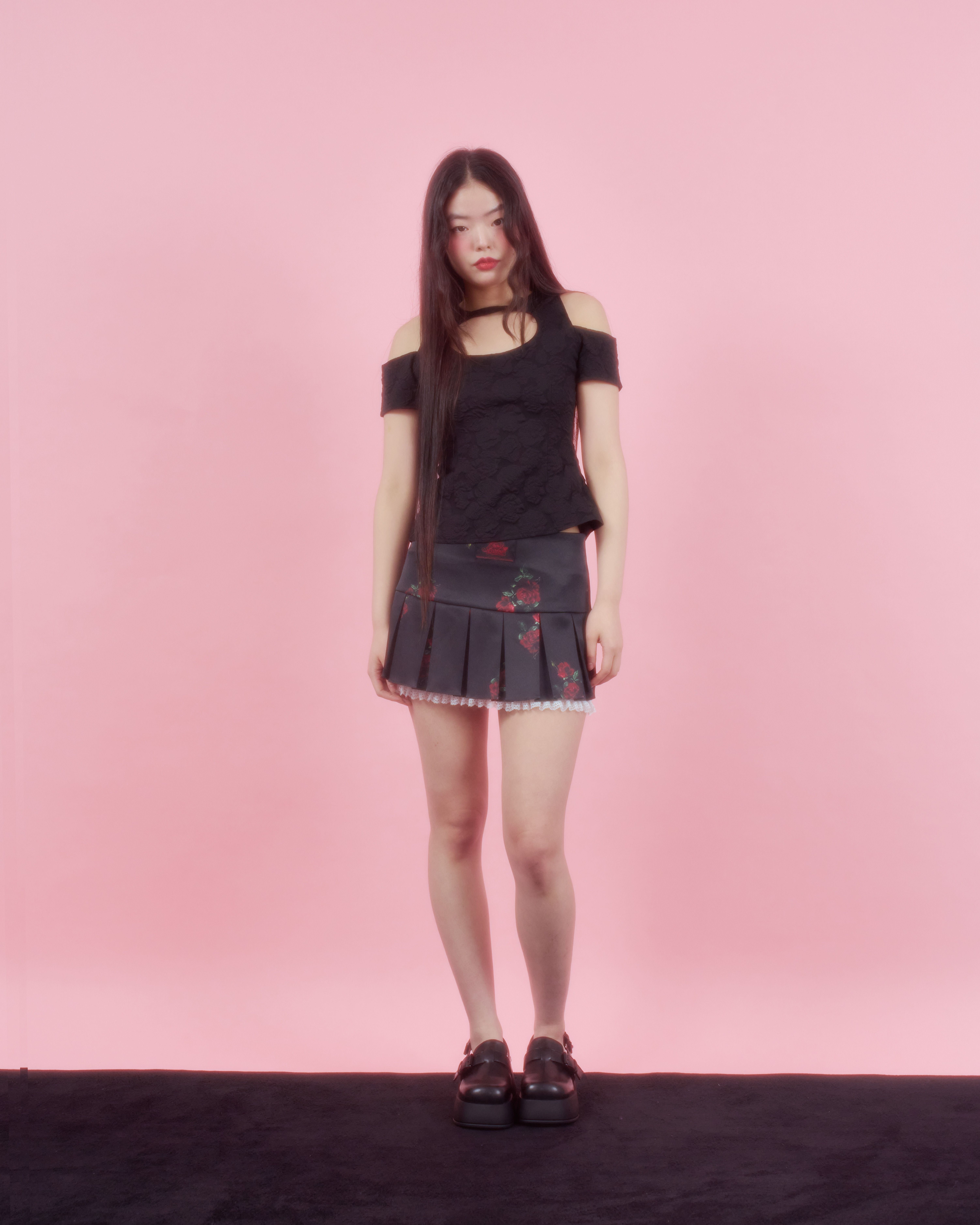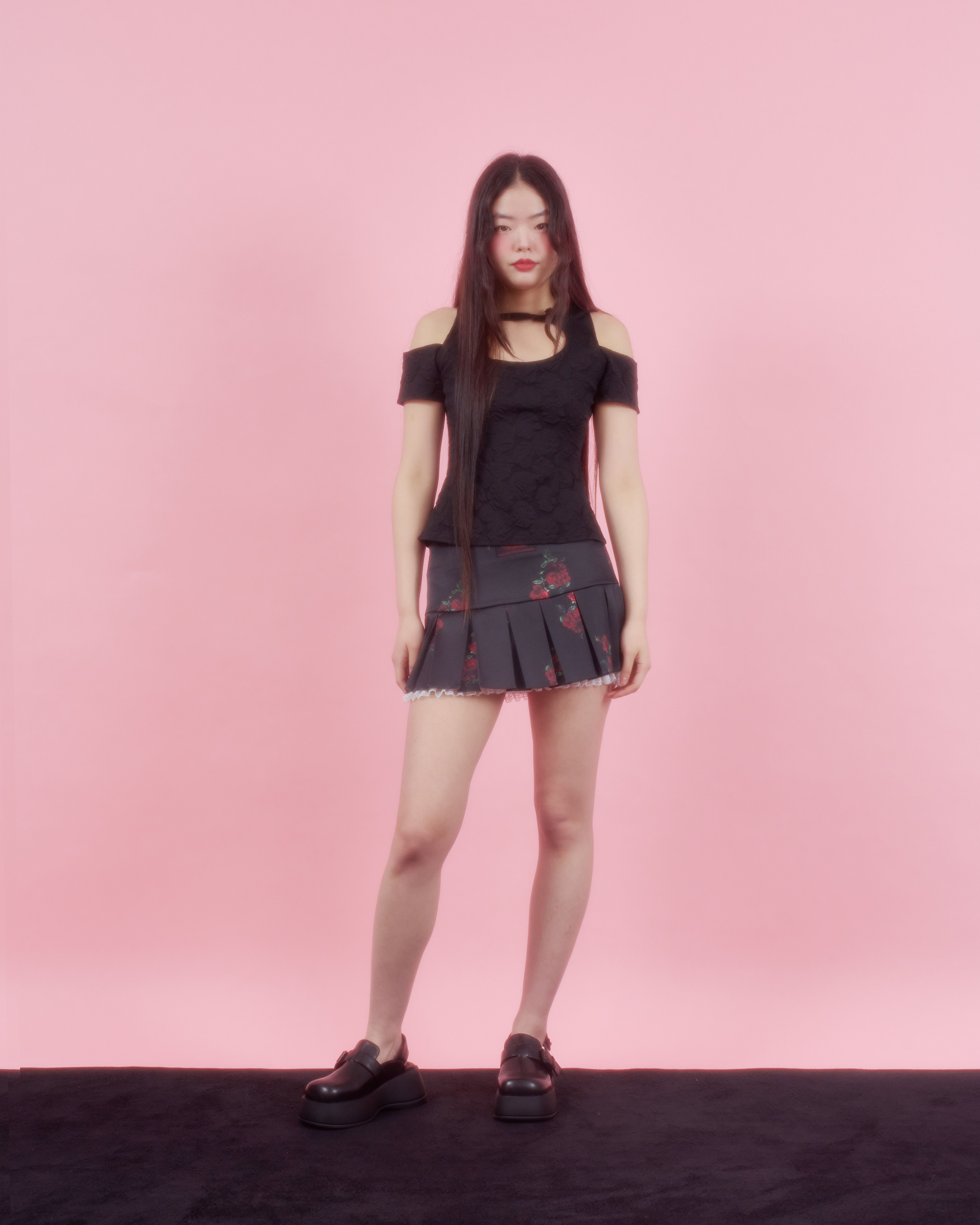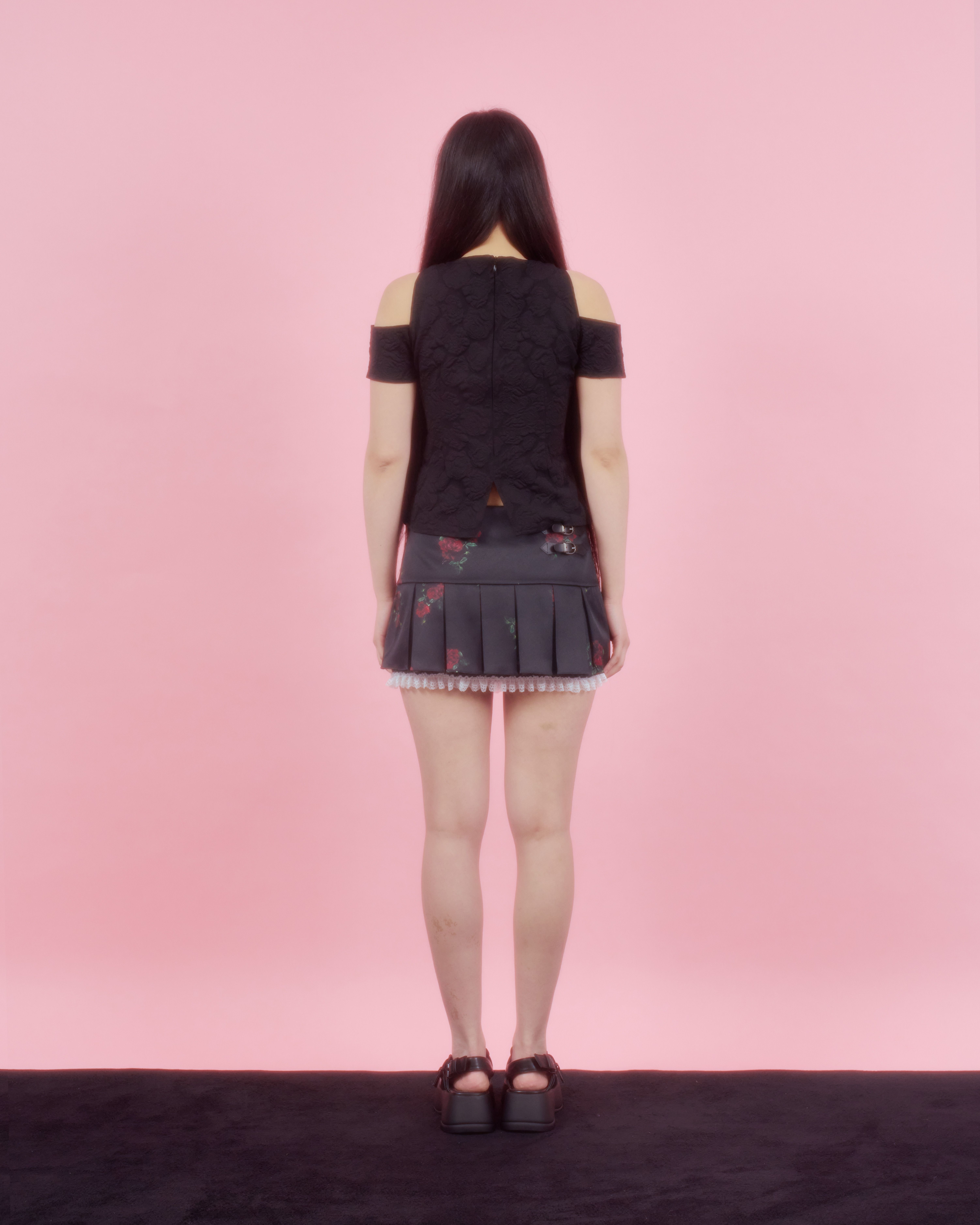 [2차]FLORAL LACE PLEATS SKIRT [BLACK]