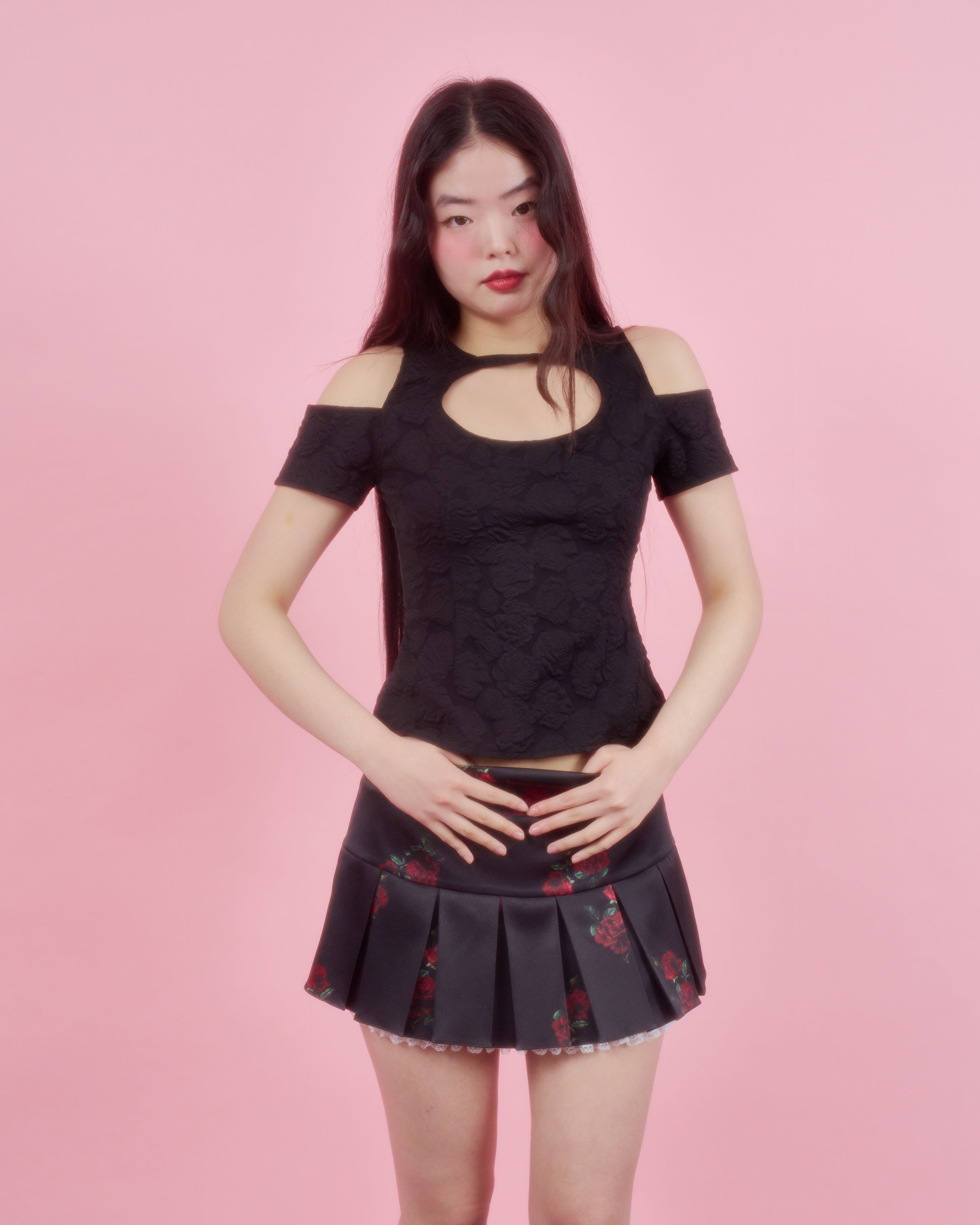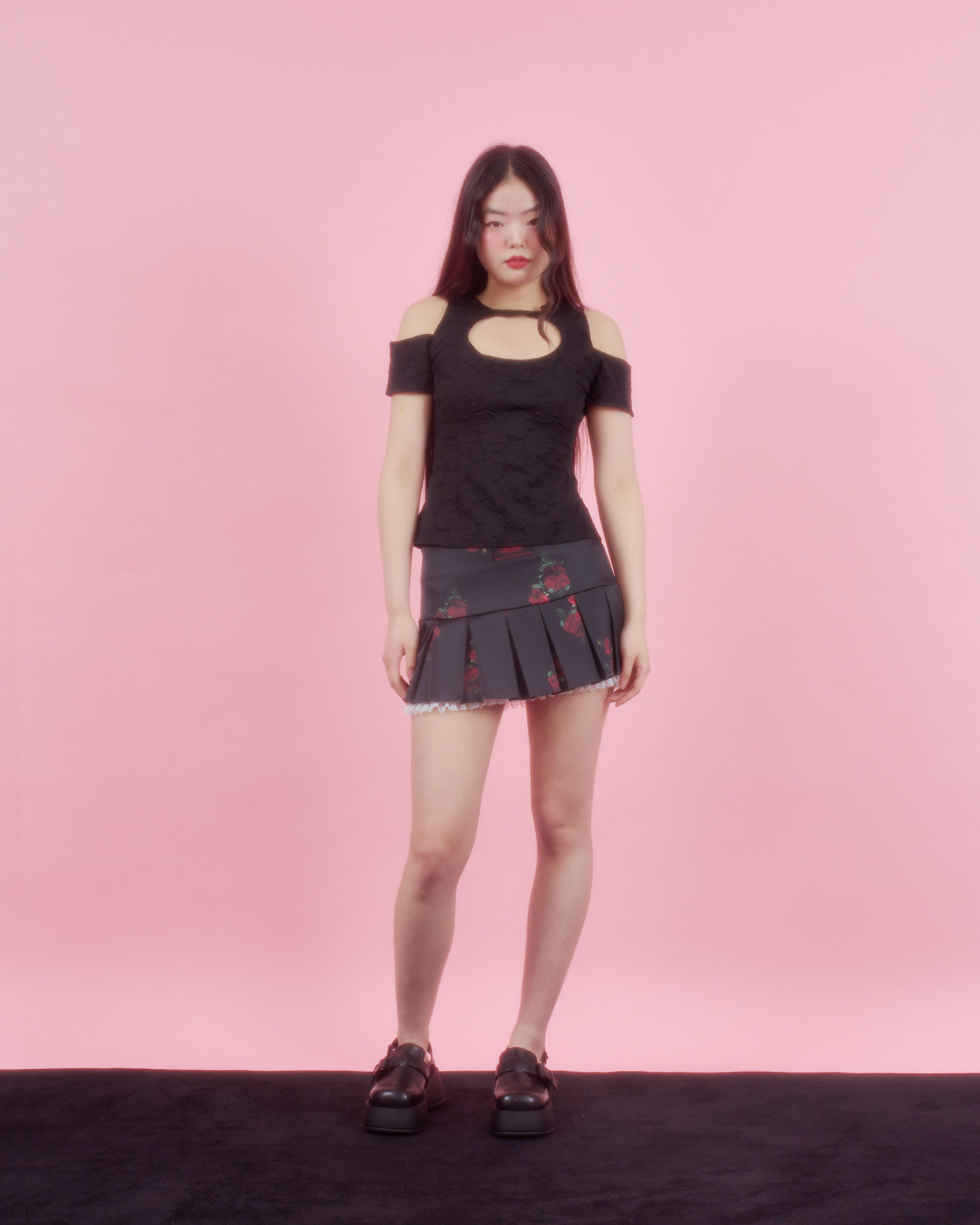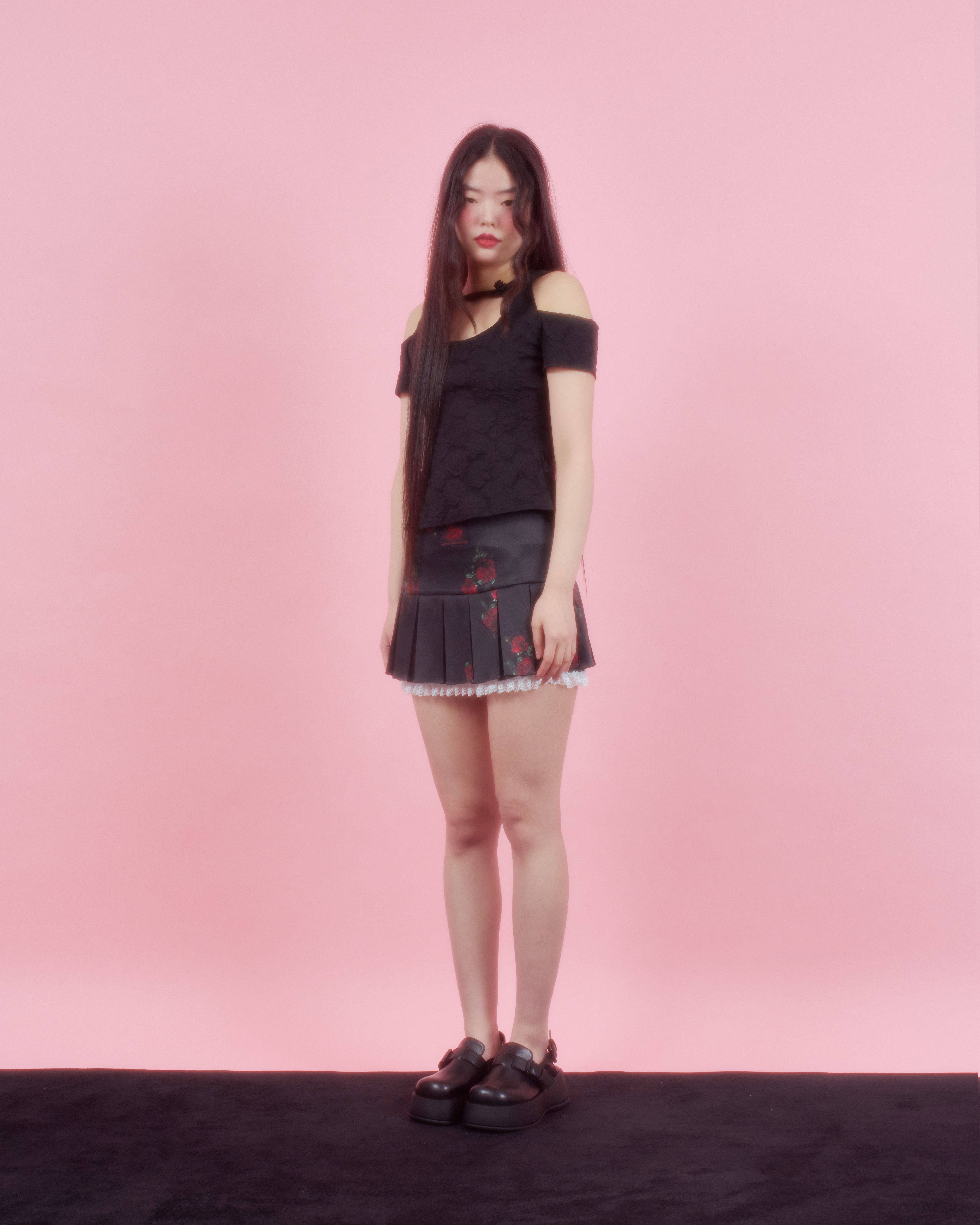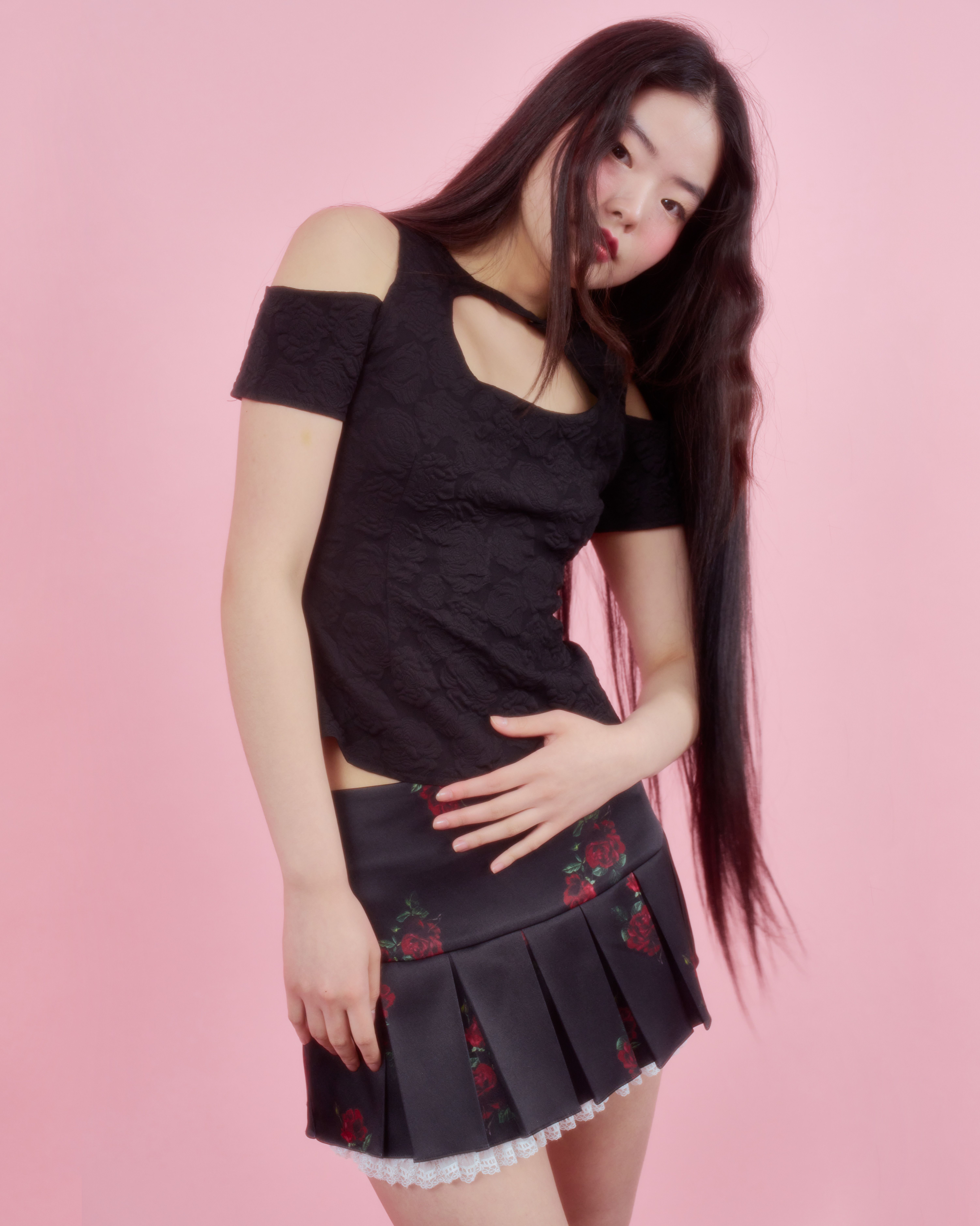 [2차]FLORAL LACE PLEATS SKIRT [BLACK]