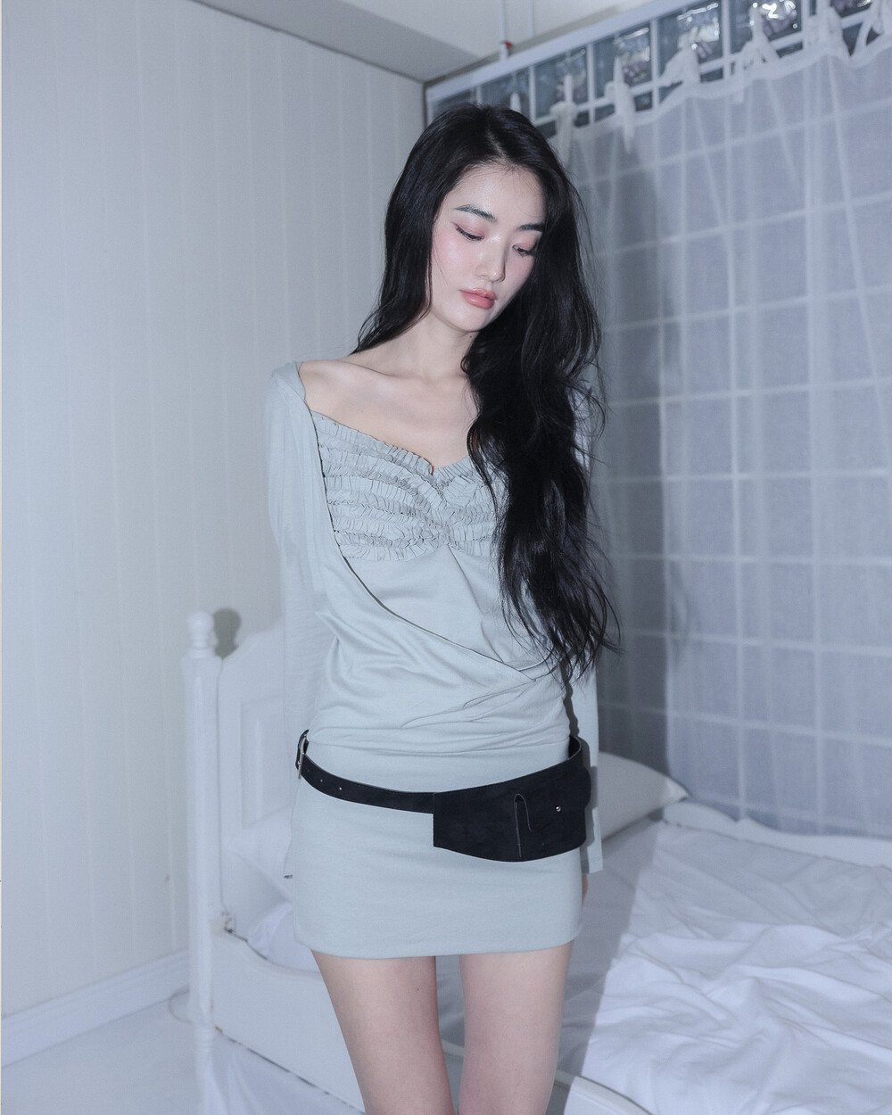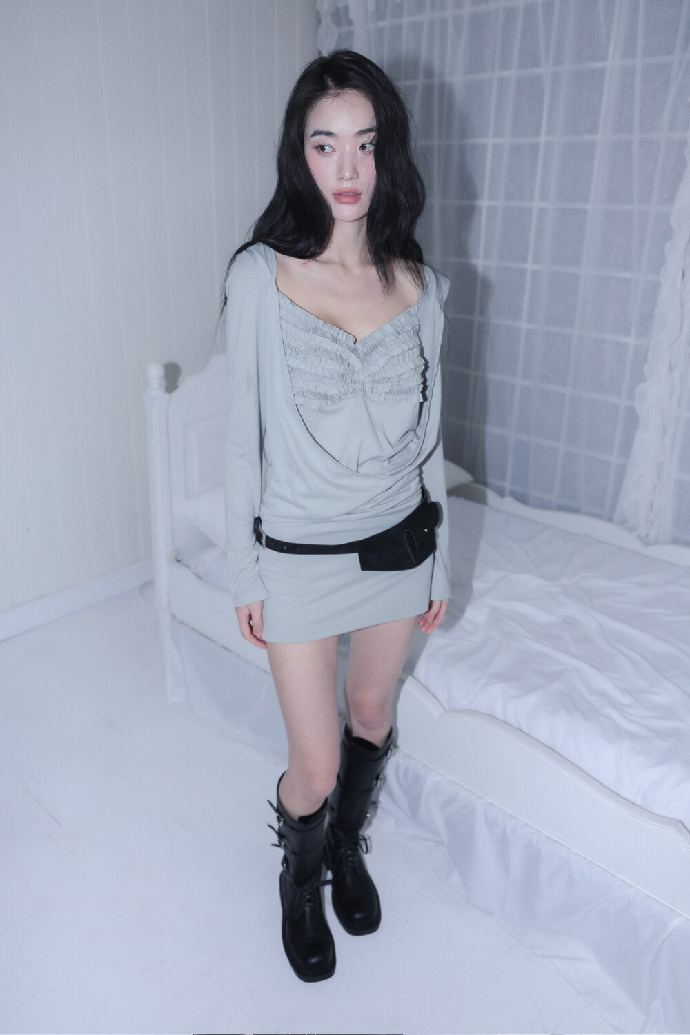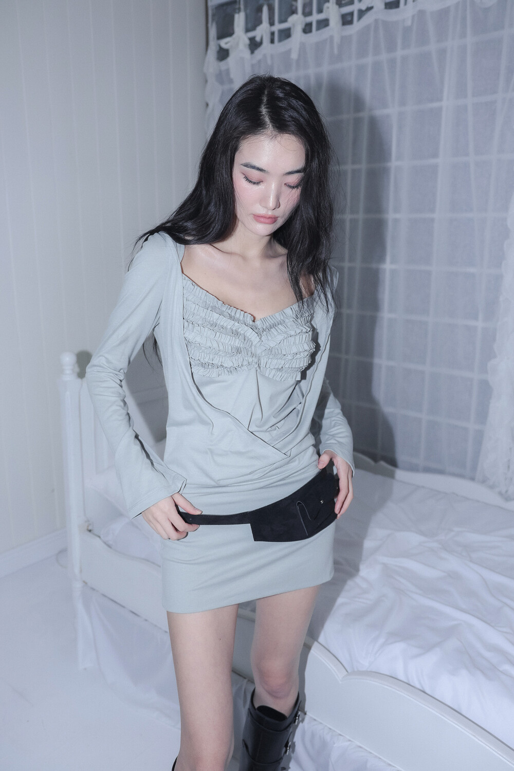 - 앞 가슴 프릴&가슴 중심 핀턱