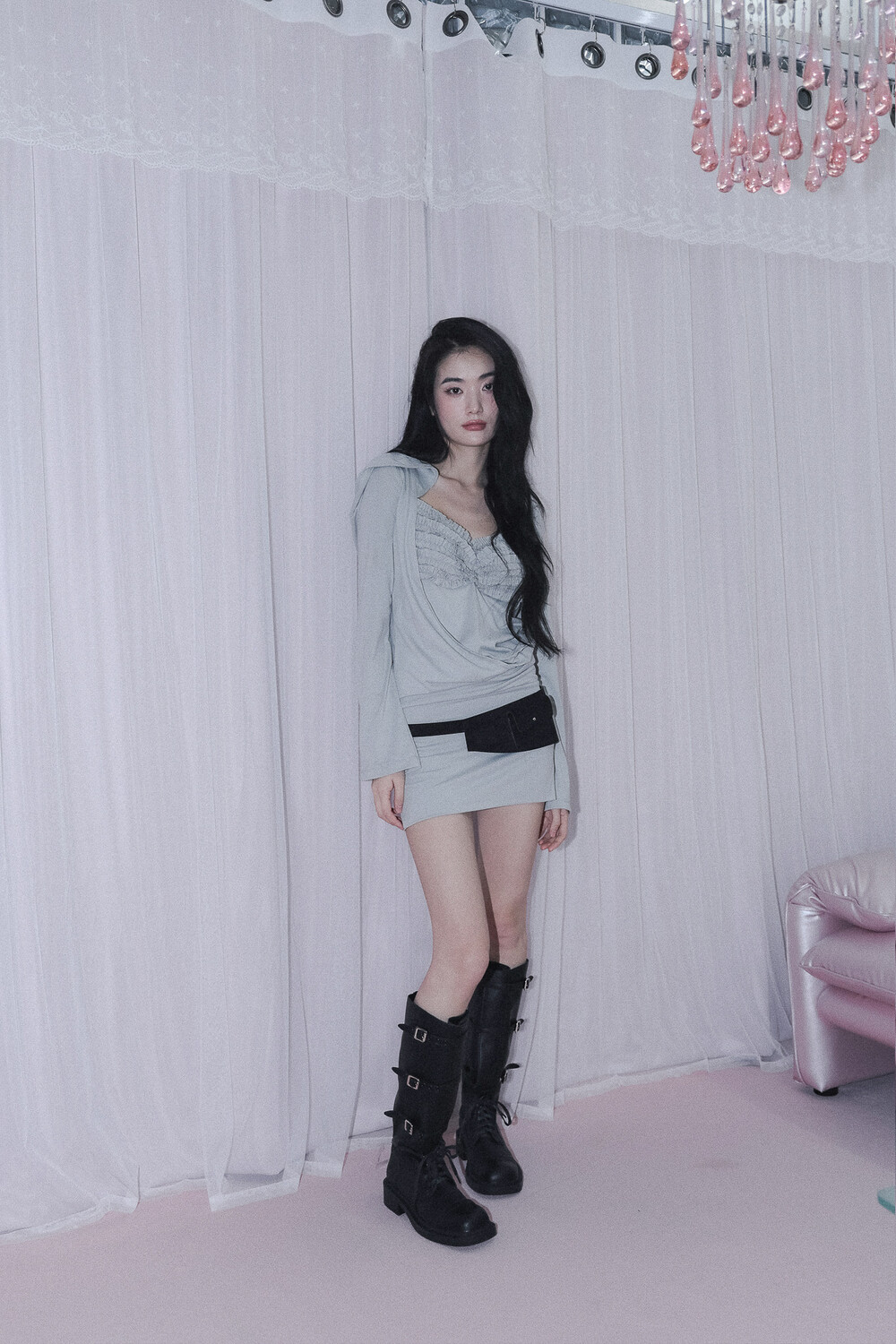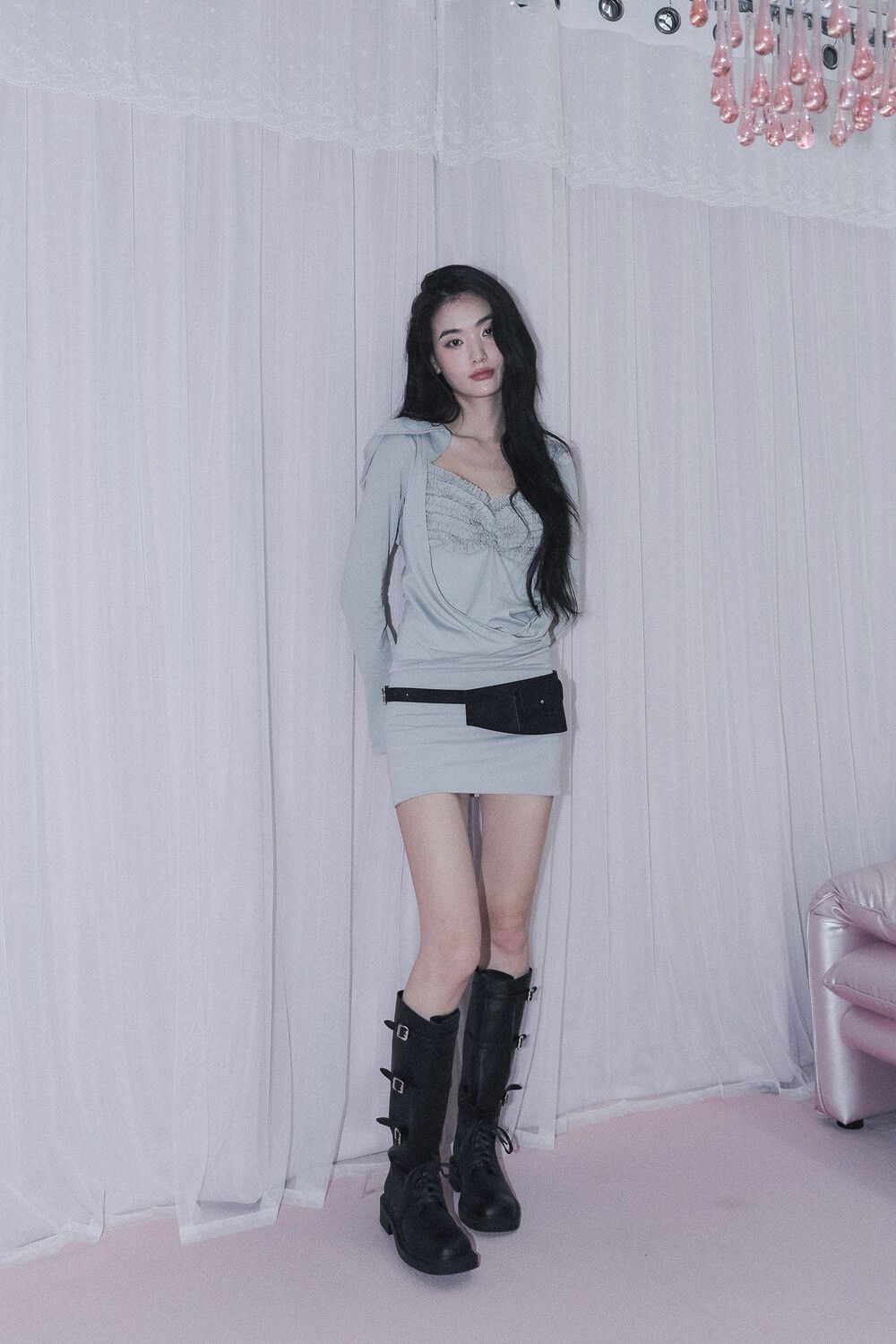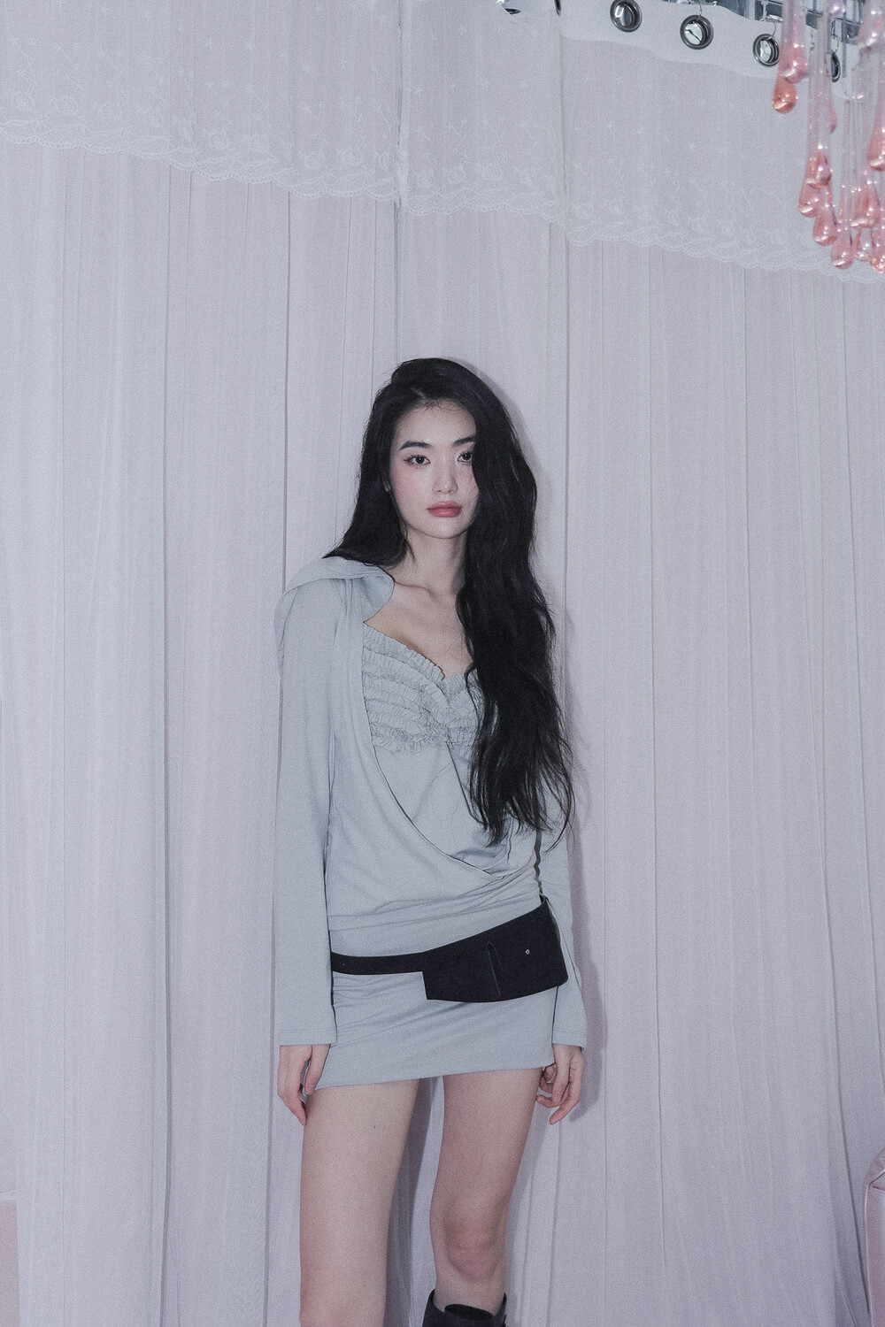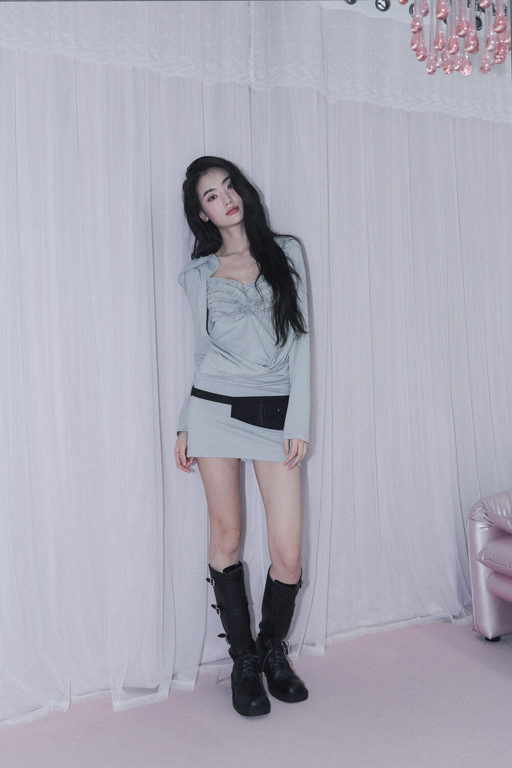 - 앞 가슴 프릴&가슴 중심 핀턱