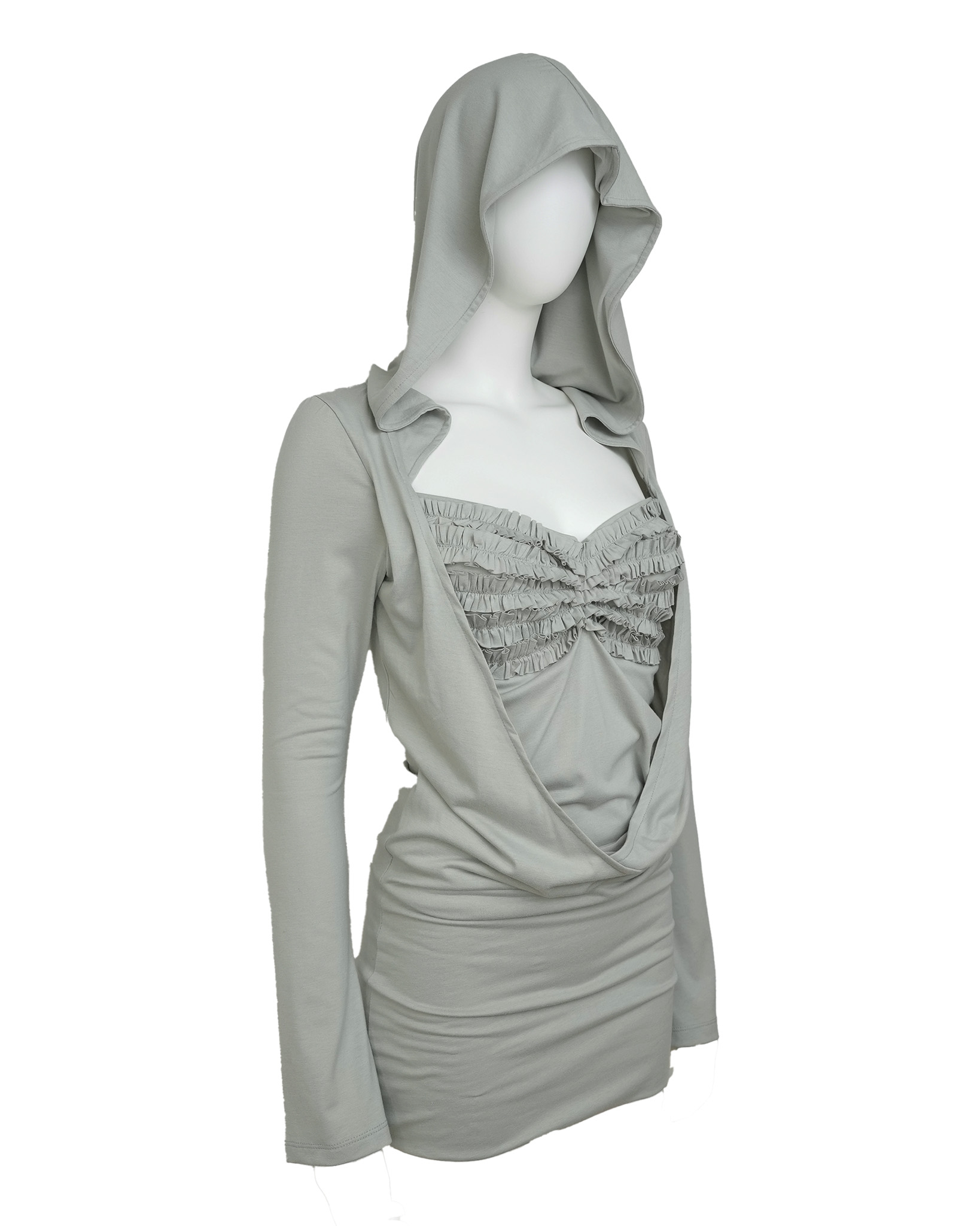 DRAPED HOODIE DRESS [mint gray]