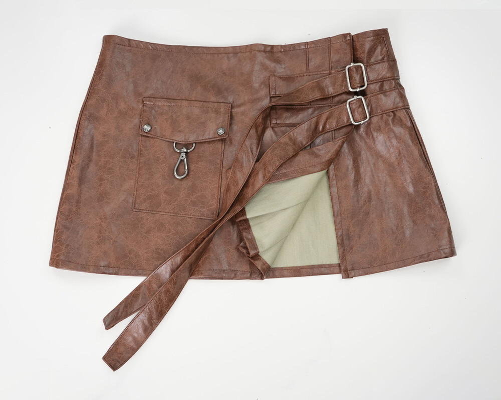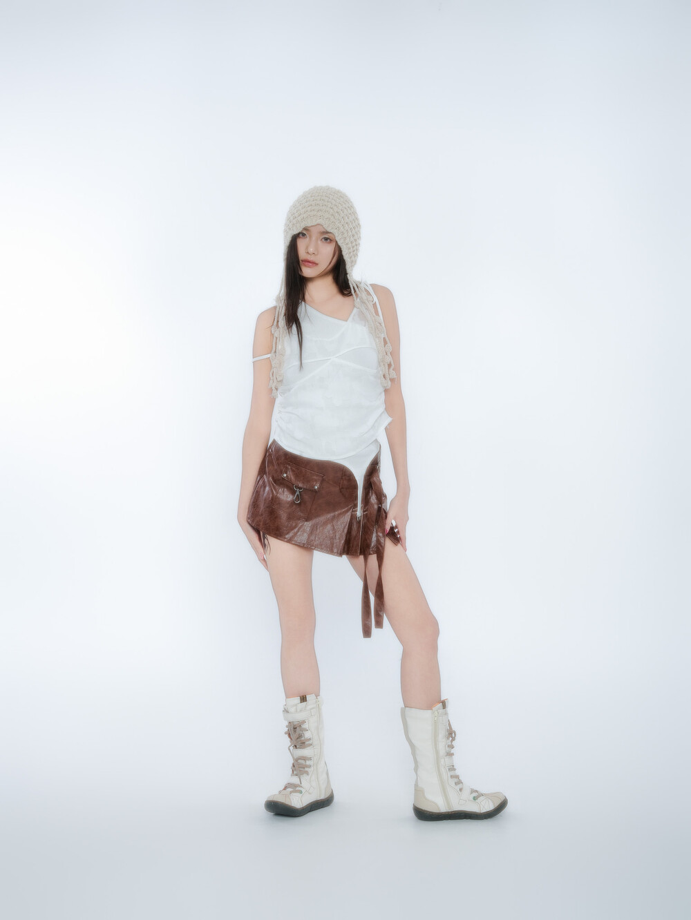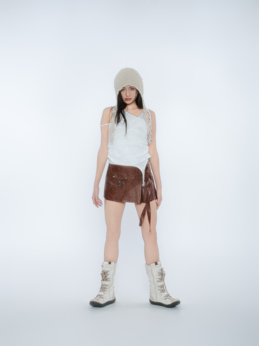 광택나는 페이크 레더 소재 / 마이크로 미니 스커트 기장의 랩 스커트 / 한 쪽 완전 오픈되는 디자인 / 착용시 허리 및 힙 둘레 조절가능![]()