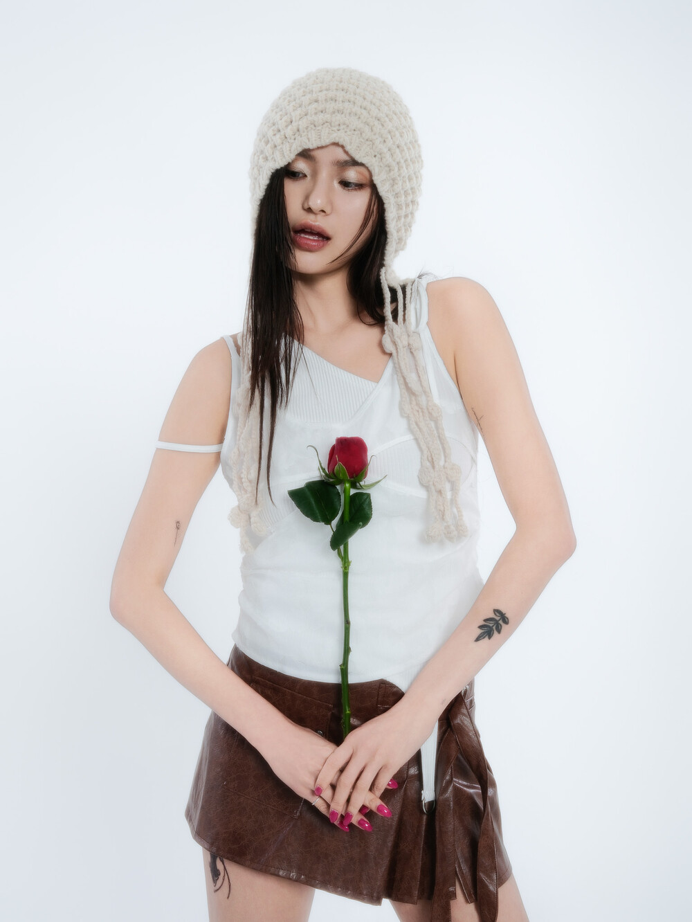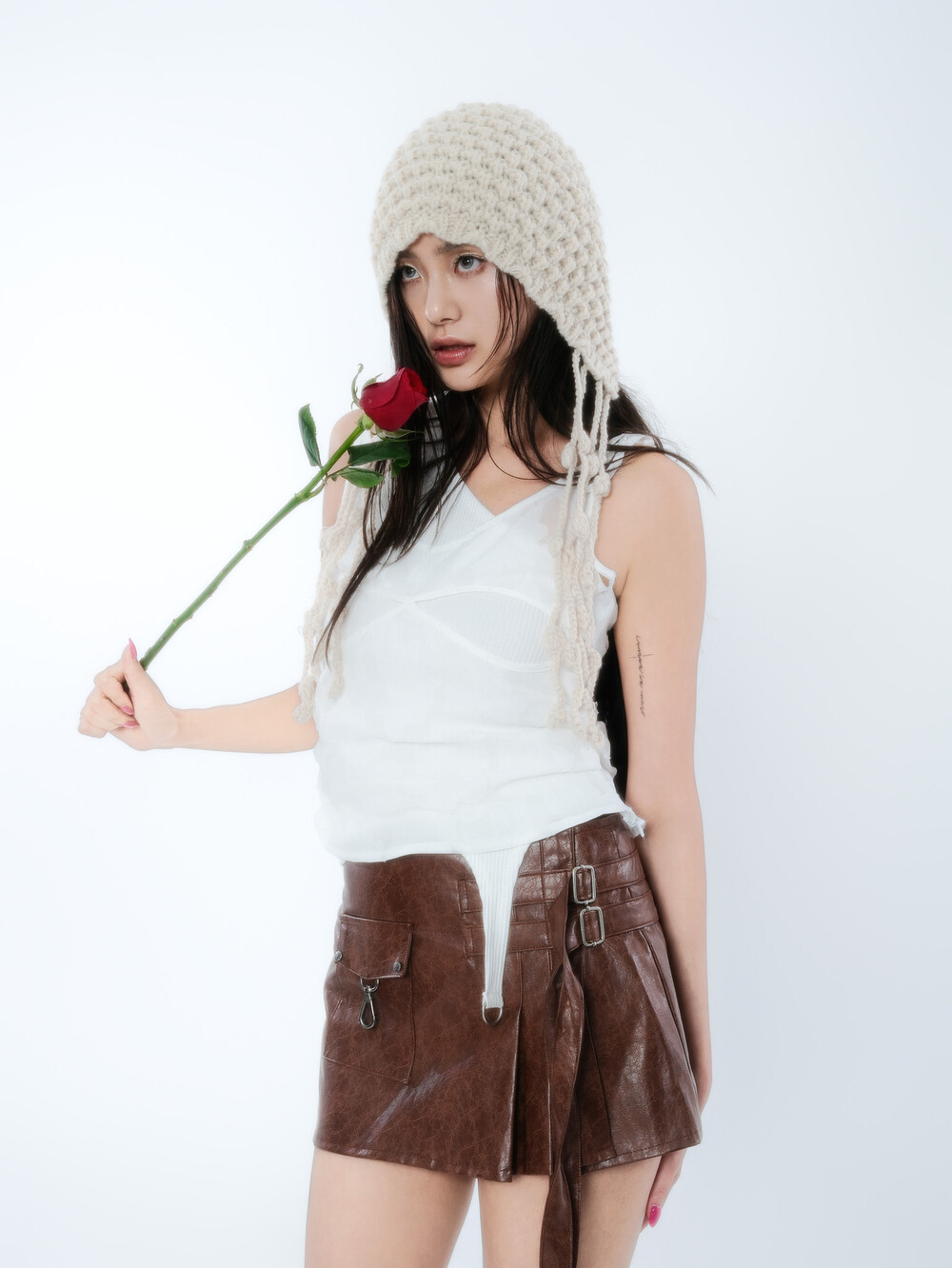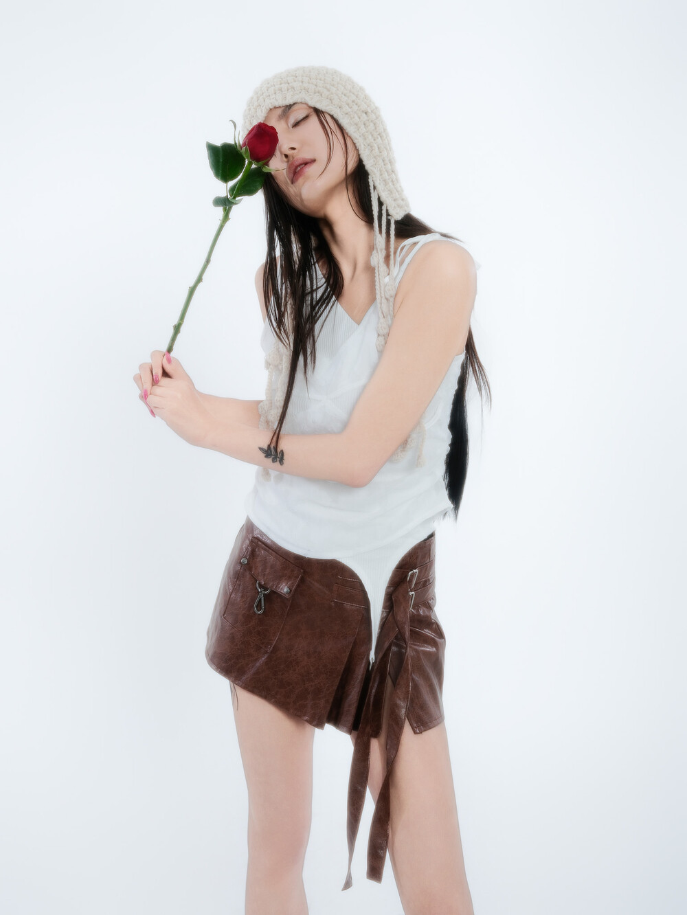 광택나는 페이크 레더 소재 / 마이크로 미니 스커트 기장의 랩 스커트 / 한 쪽 완전 오픈되는 디자인 / 착용시 허리 및 힙 둘레 조절가능![]()