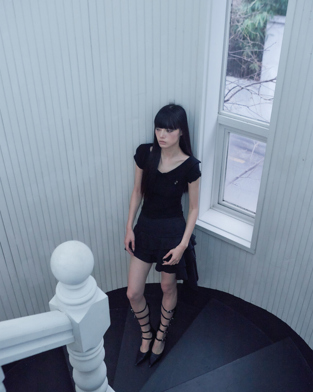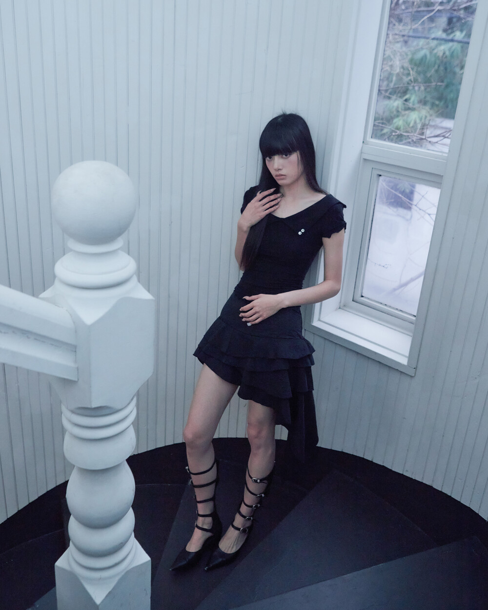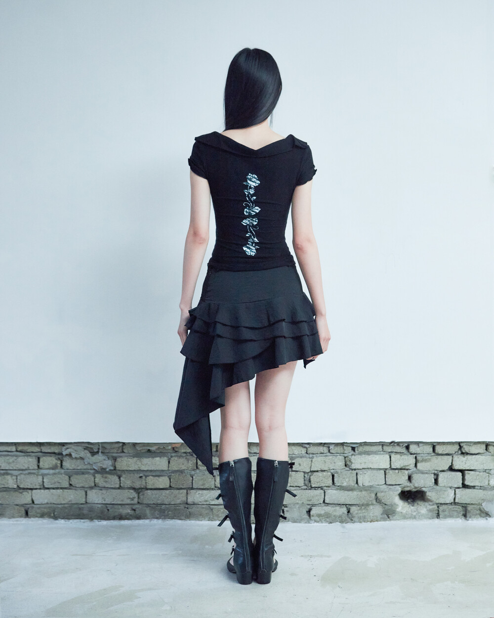 BACK ROSE SHAWL T [BLACK]