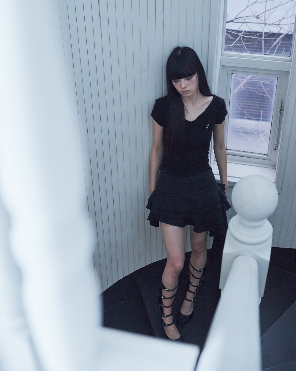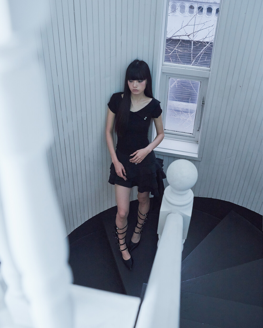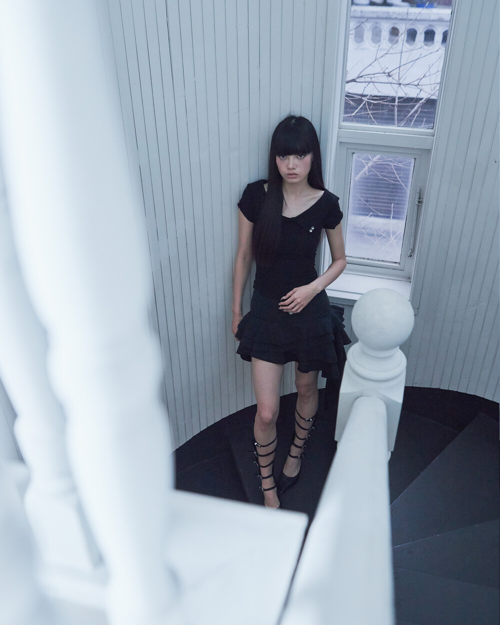 BACK ROSE SHAWL T [BLACK]