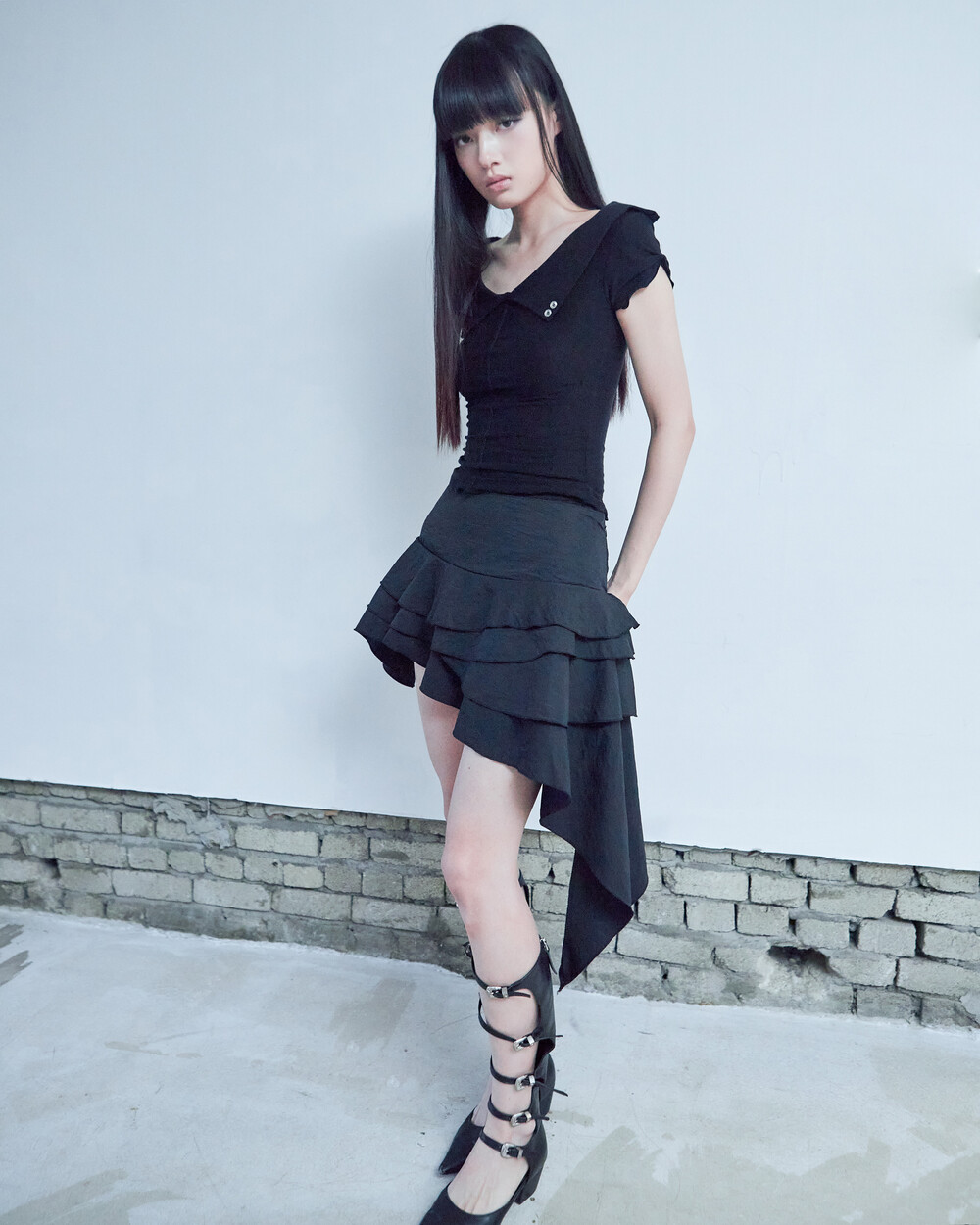 - 앞중심 핀턱으로 슬림해보이는 효과