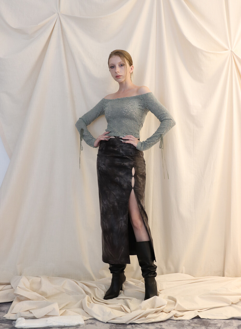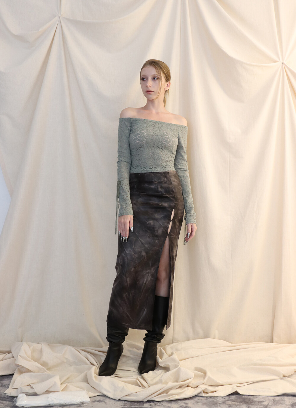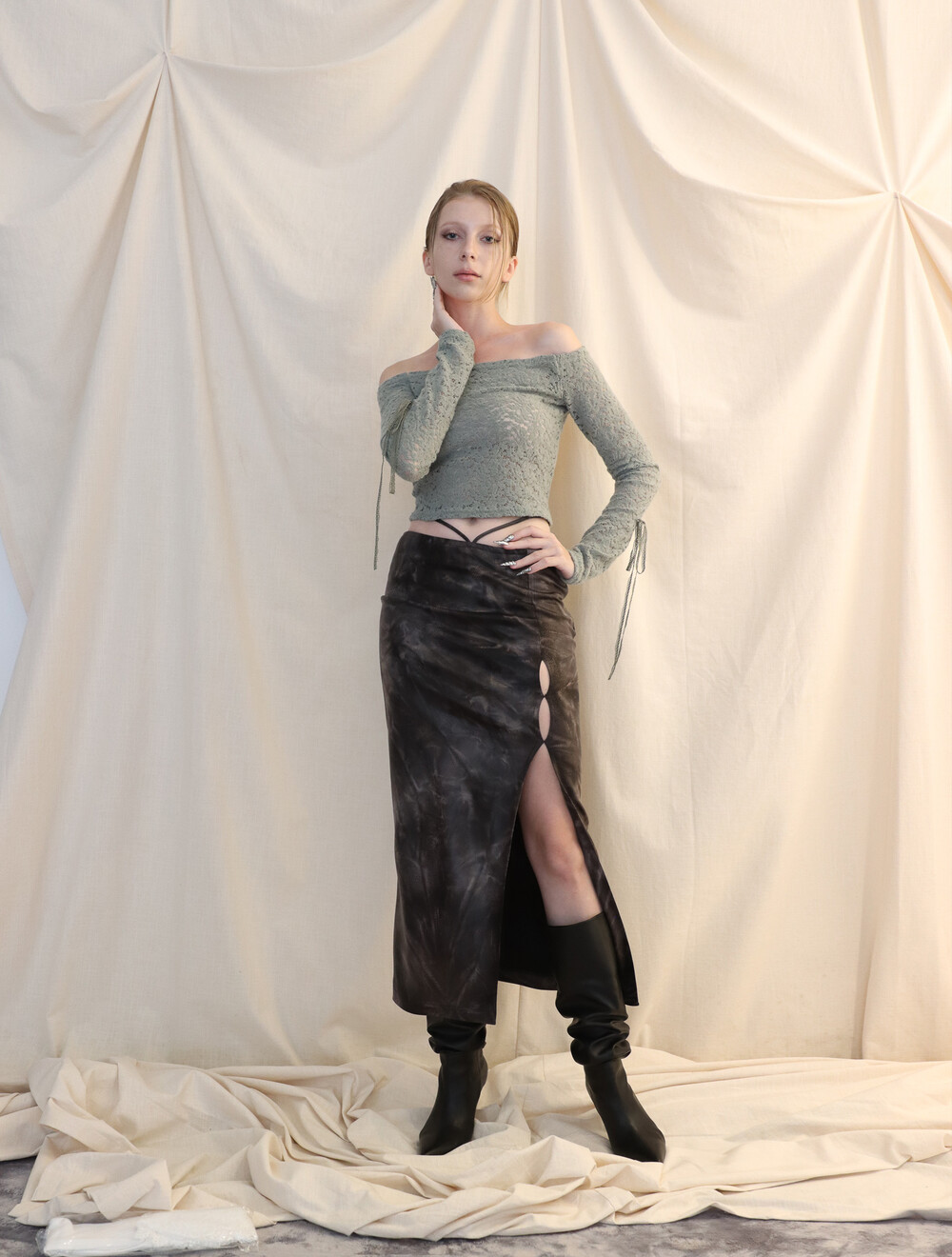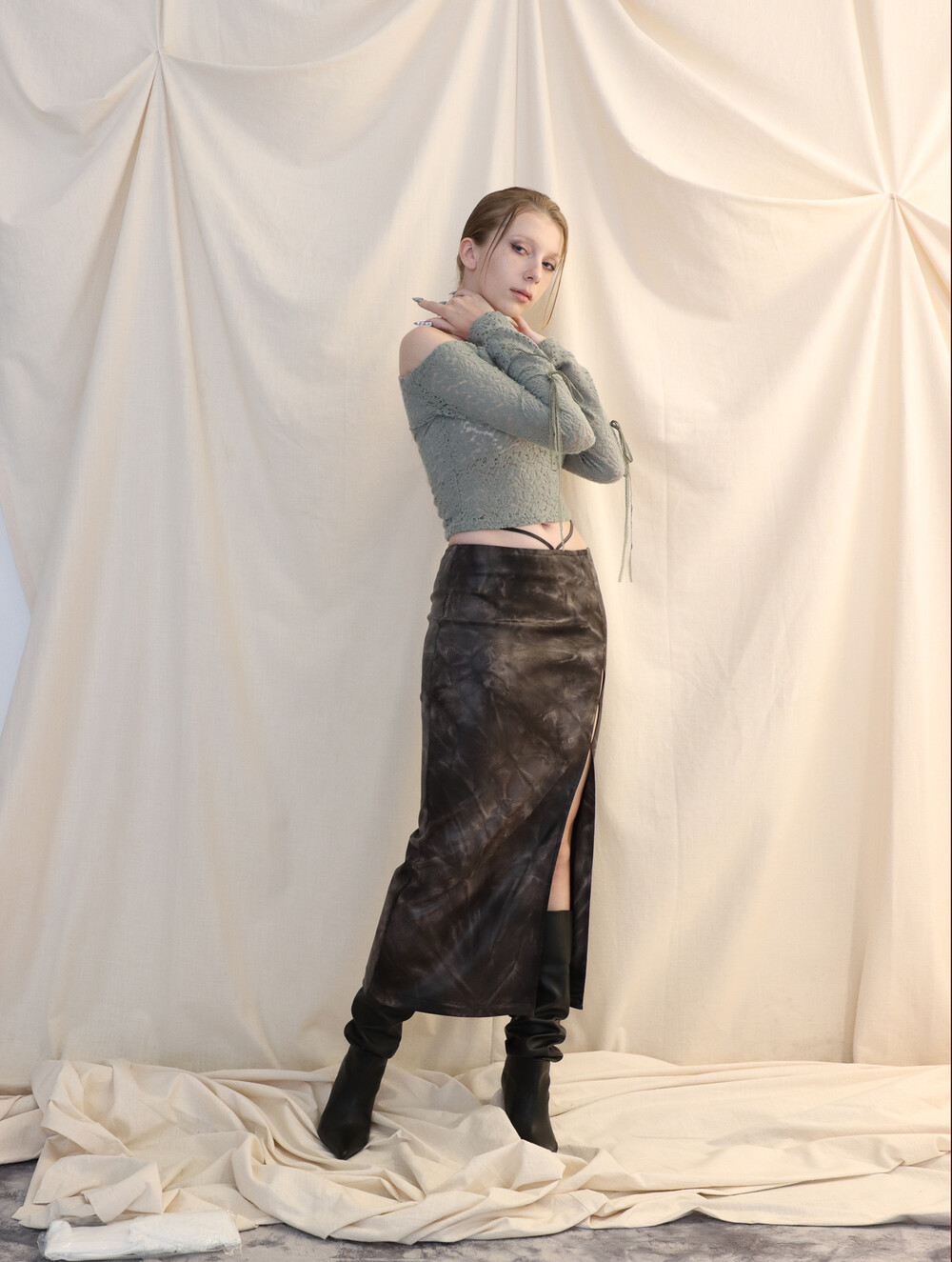 불규칙한 길이의 트임과 허리를 묶는 스트링이 포인트이며, 발목까지 오는 맥시 기장의 스커트입니다. 로우 웨이스트 핏이며 도톰하지만 신축성 좋은 원단으로, 스타킹이나 레깅스와 함께 착용하시면 여러 계절 커버가능합니다.