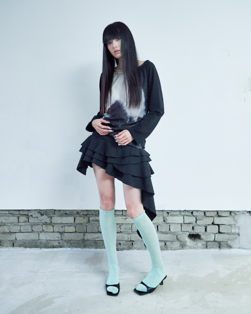 - 넓은 넥으로 원숄더로 착용가능