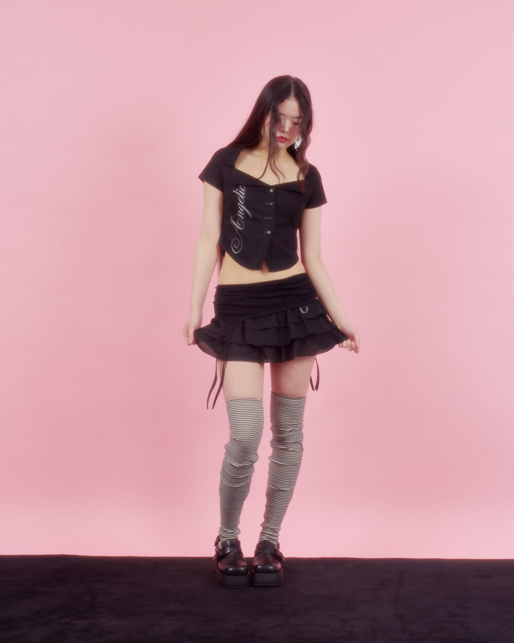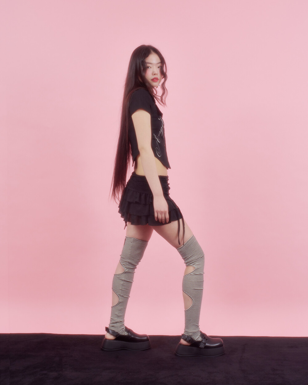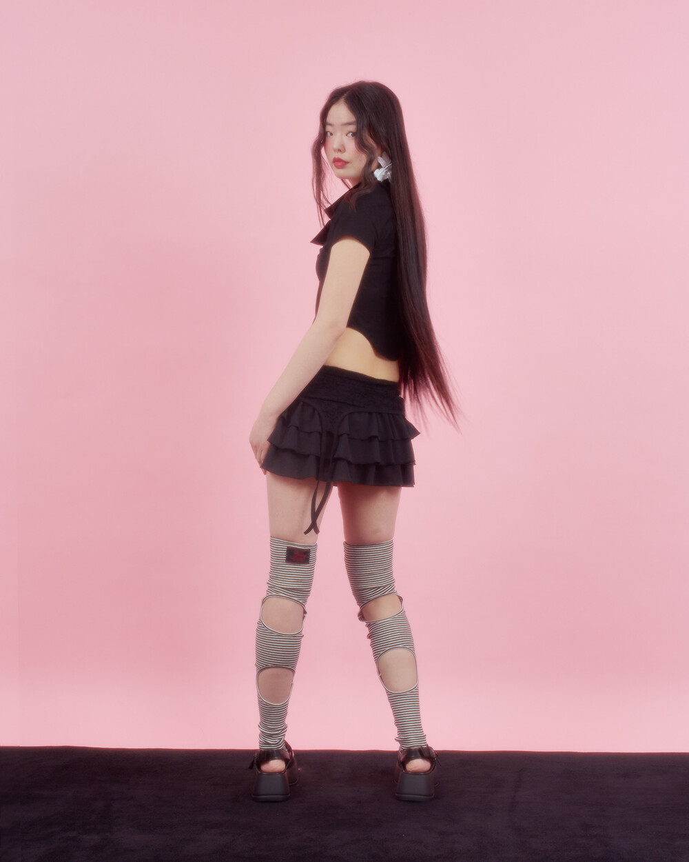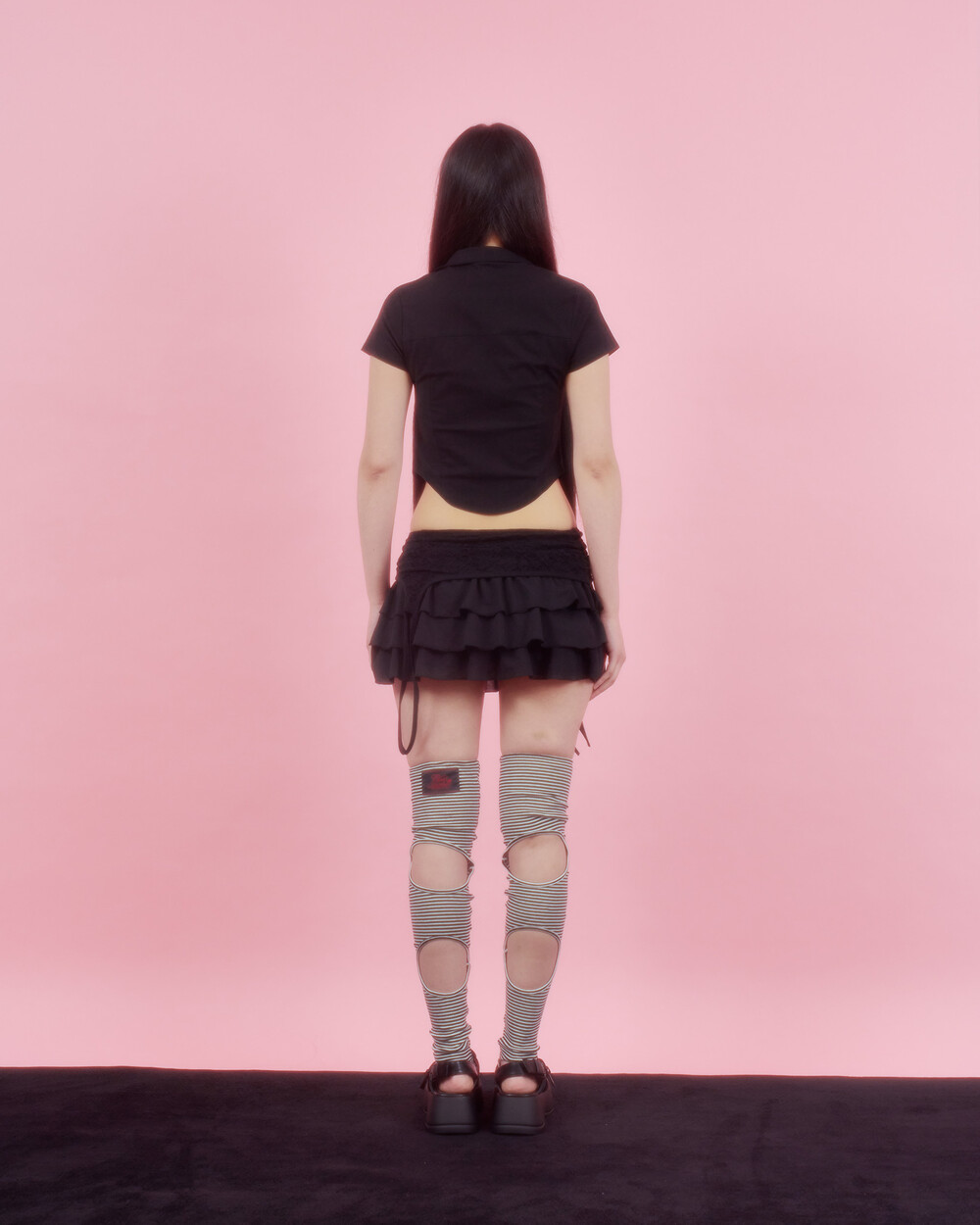 STRIPE BACK HOLE LEG WARMER [BLACK]