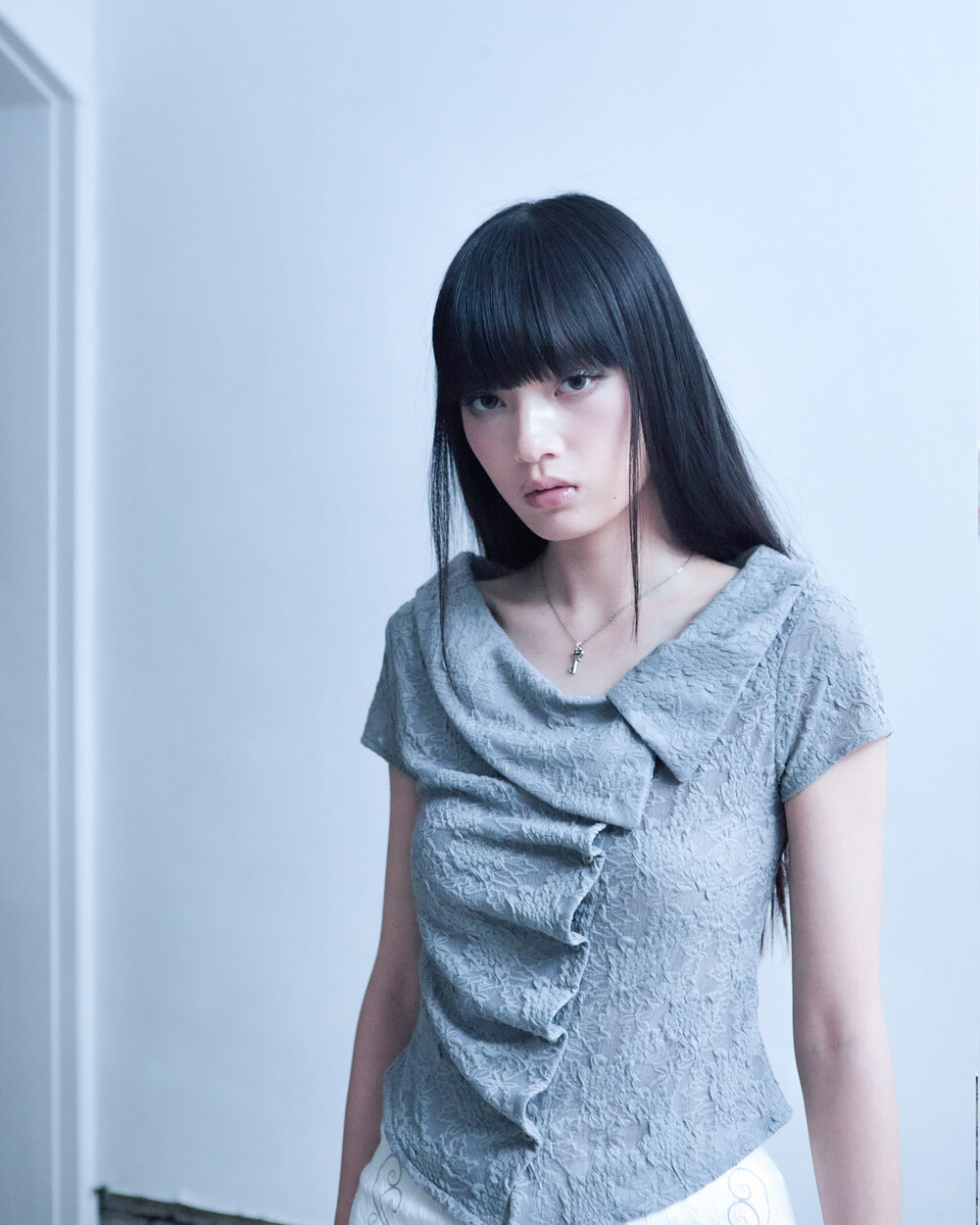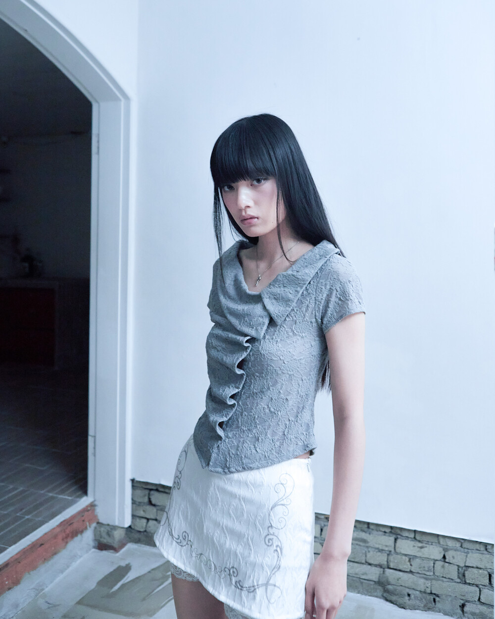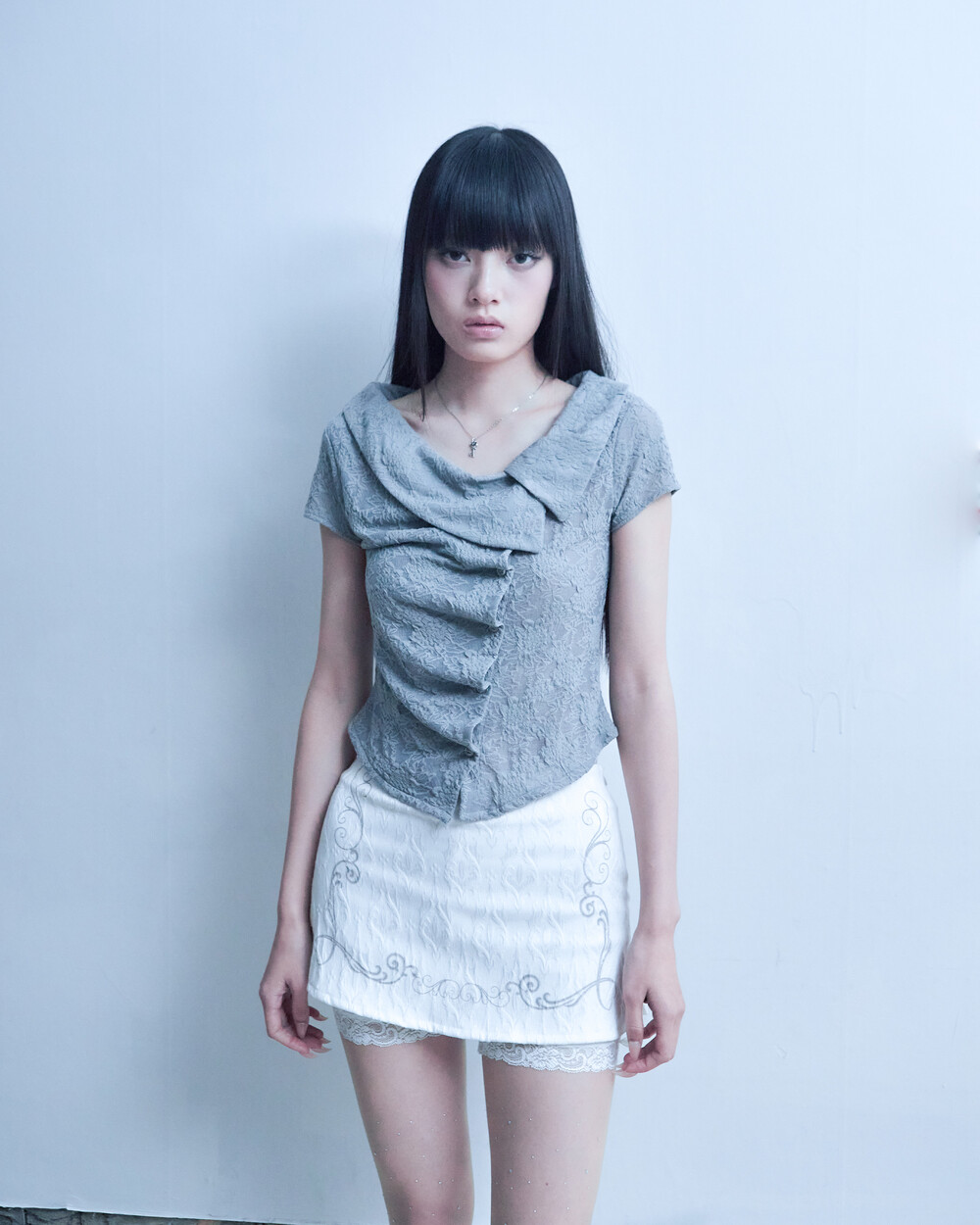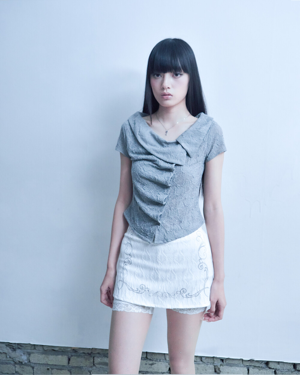 ASYMMETRIC ROSE CALLAR SHIRTS [GRAY]