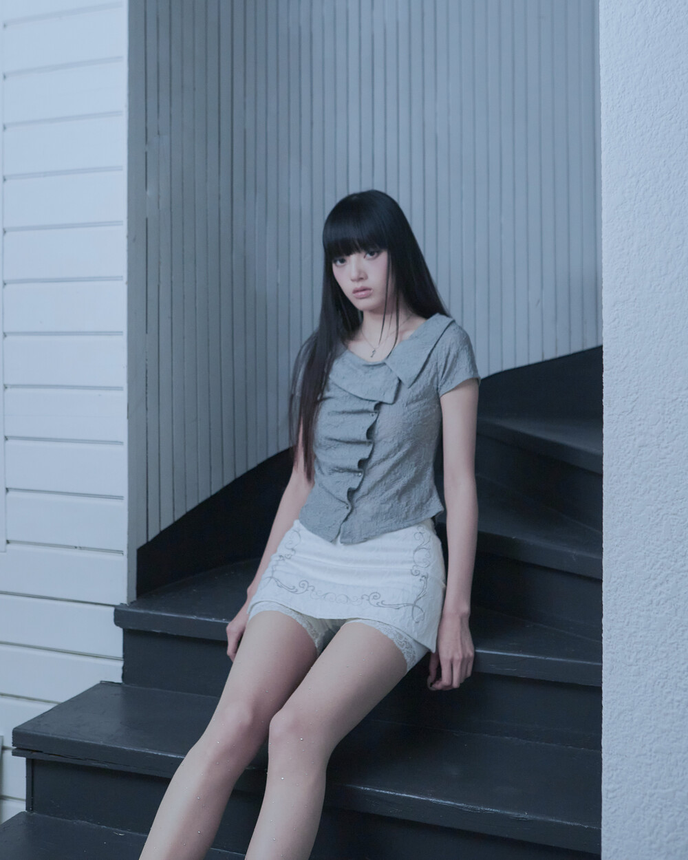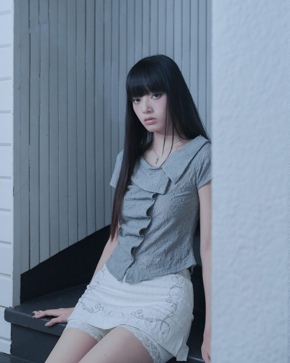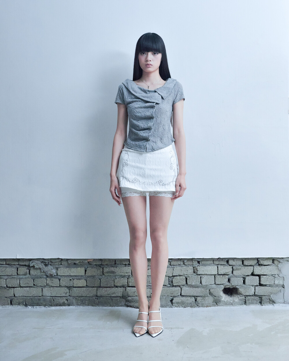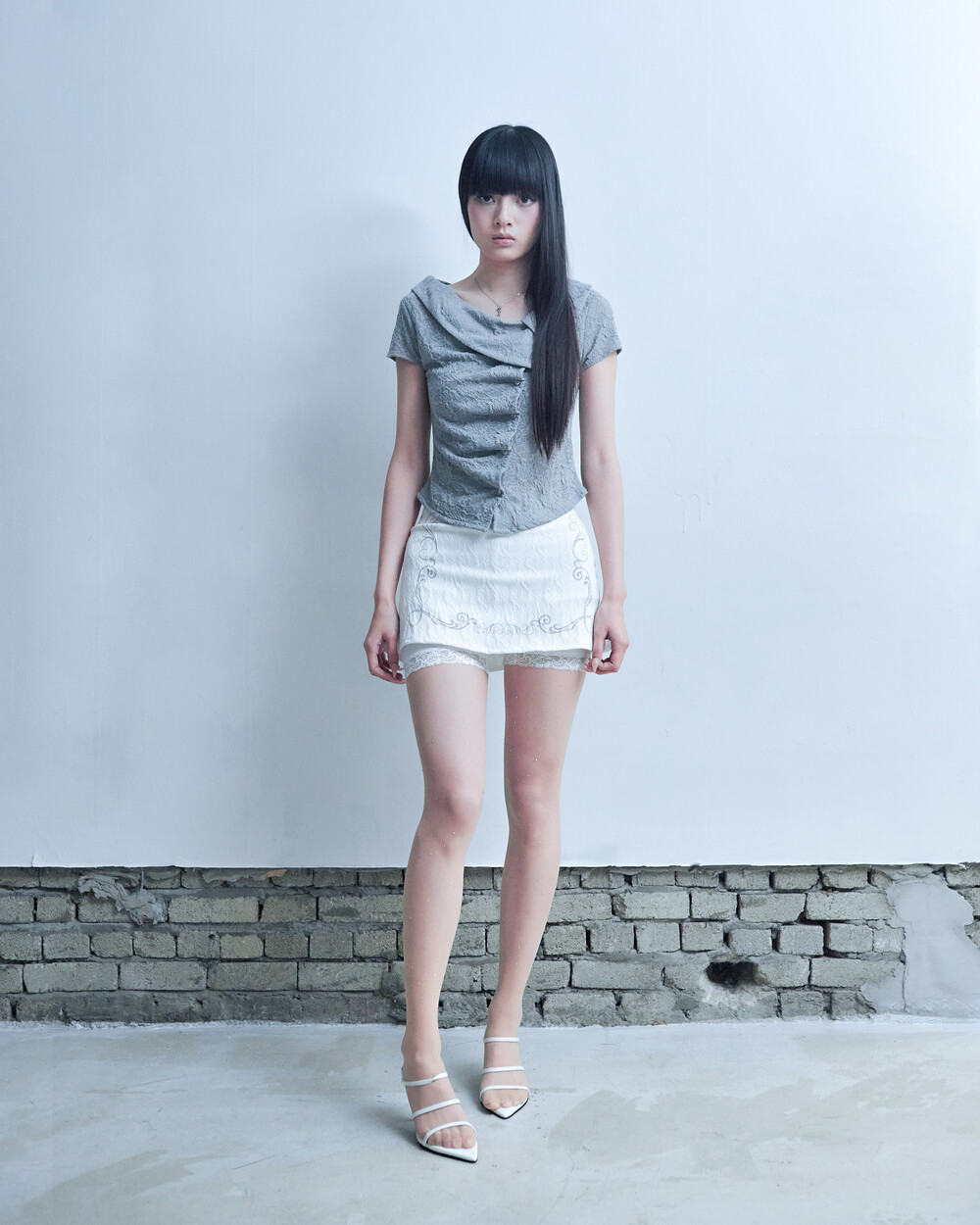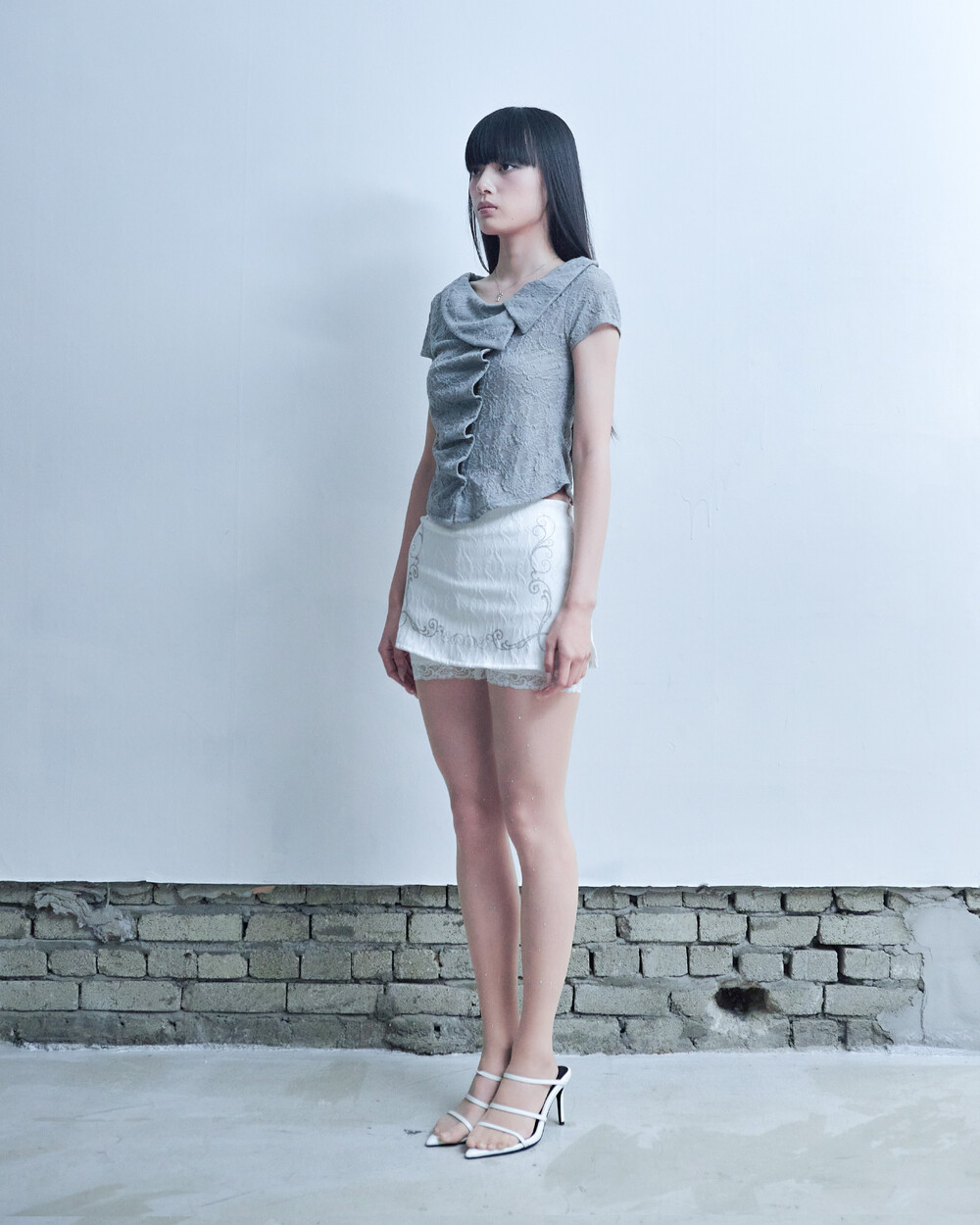 ASYMMETRIC ROSE CALLAR SHIRTS [GRAY]