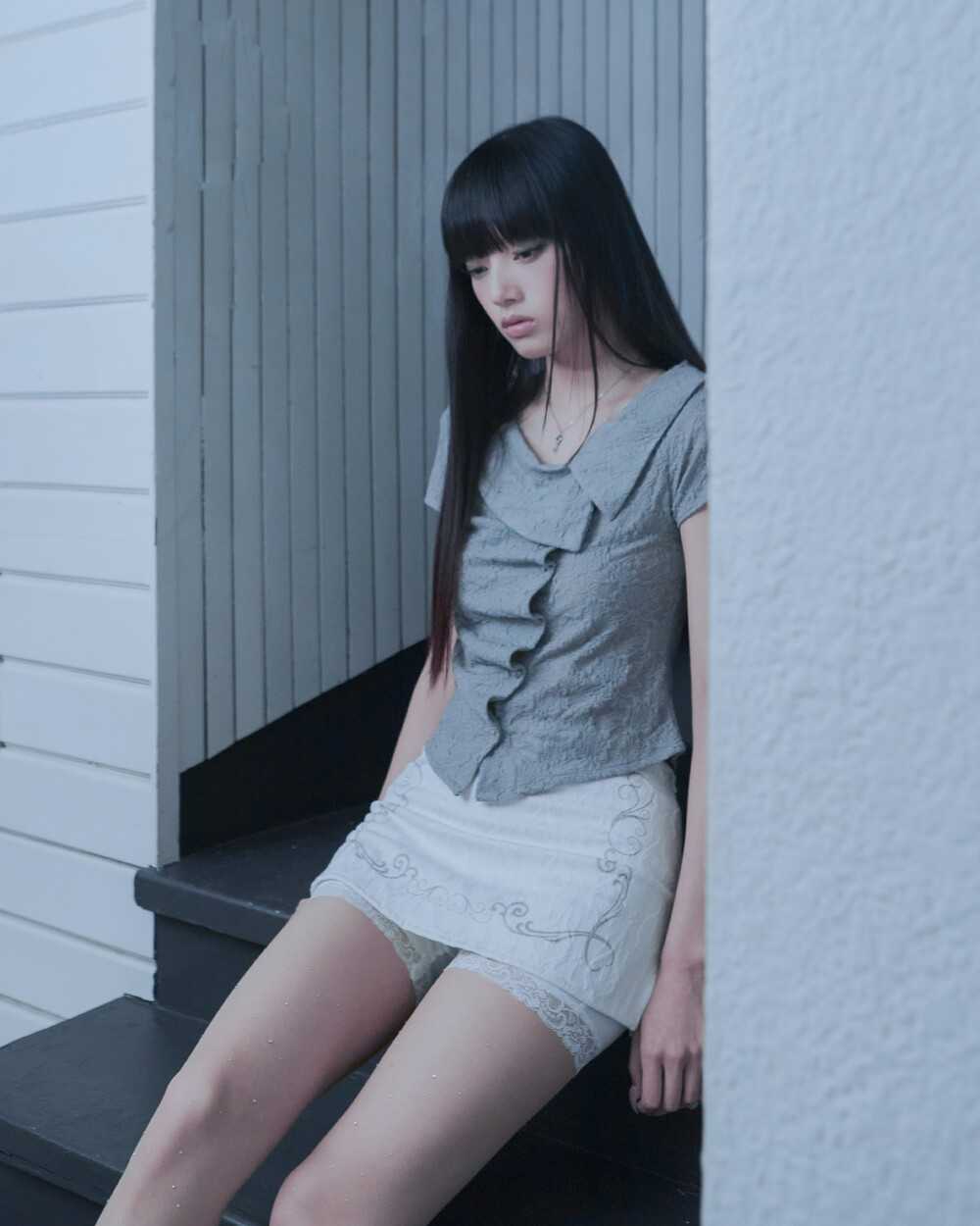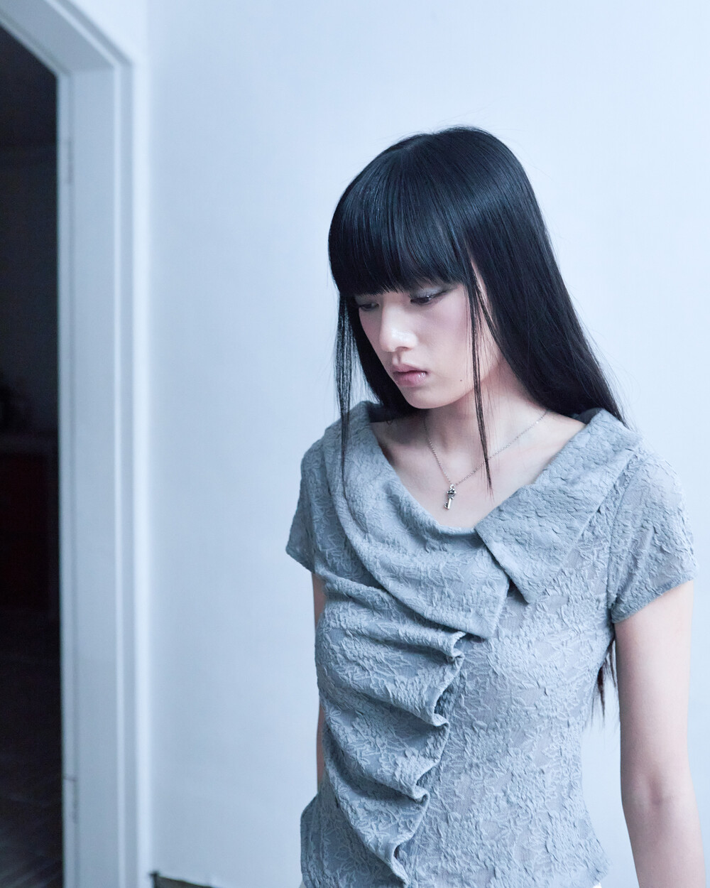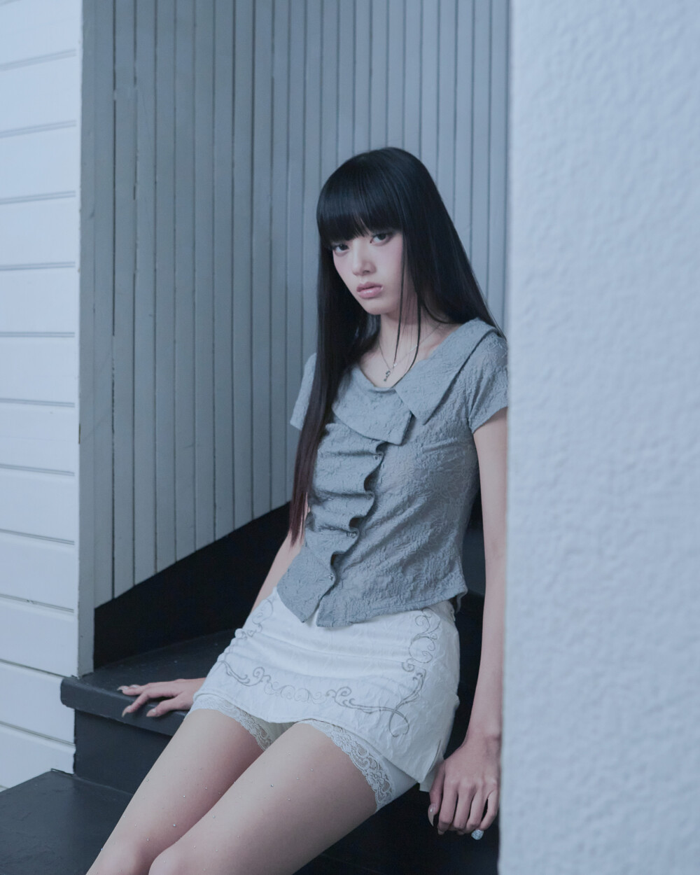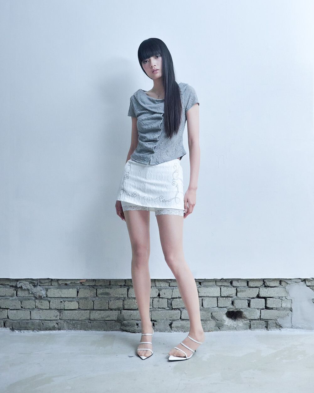 ASYMMETRIC ROSE CALLAR SHIRTS [GRAY]